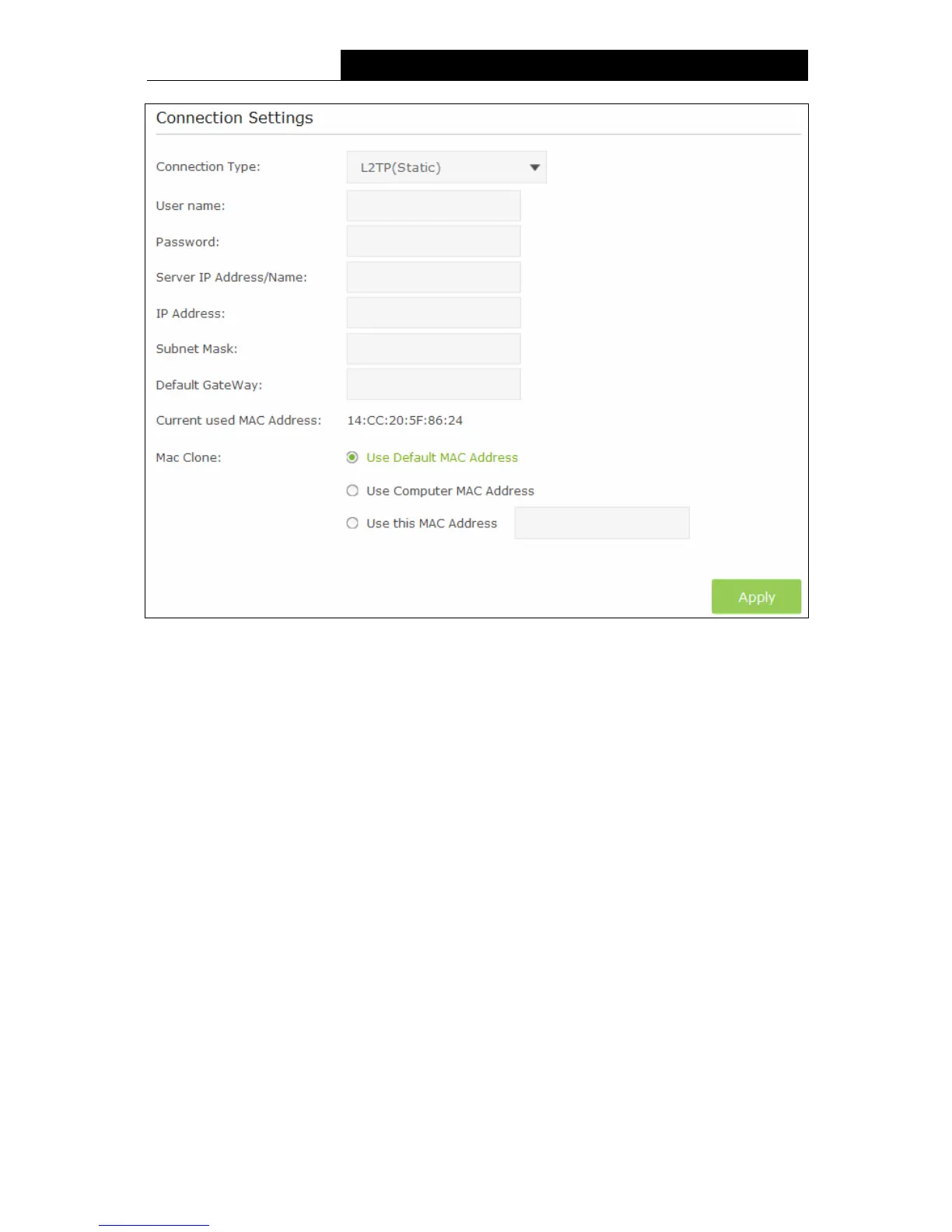 Current used MAC Address - This field displays the current MAC address of the Internet