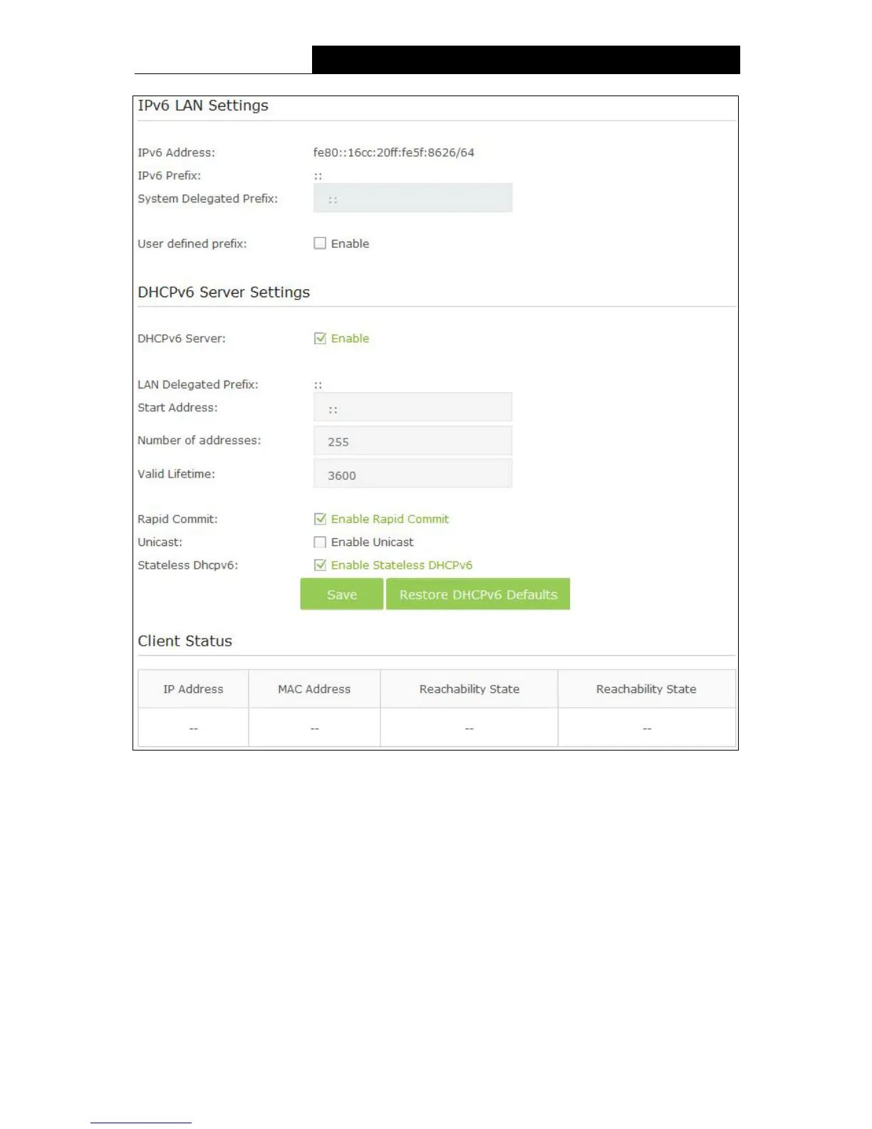 DHCPv6 Server – Check the box to enable DHCPv6 server.