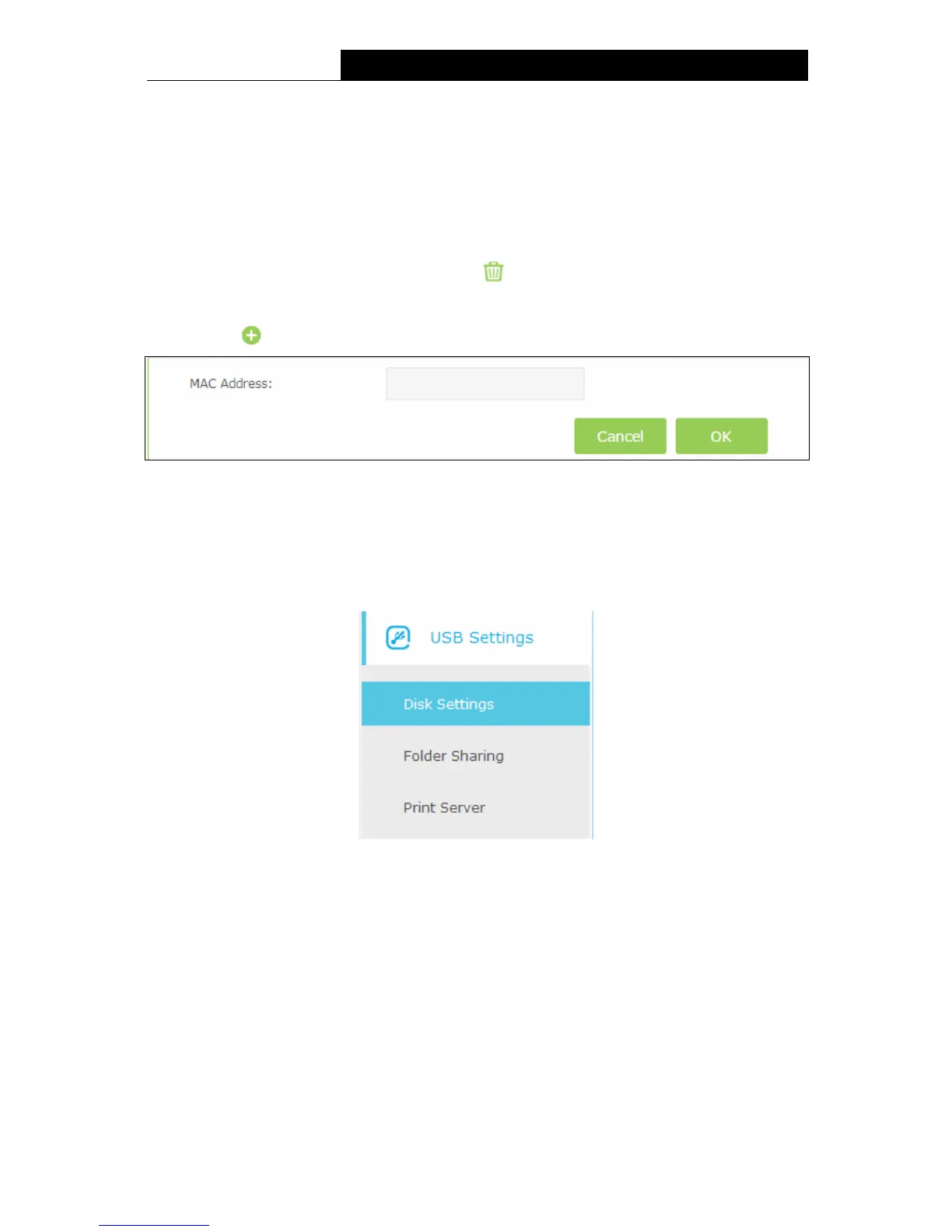 There are three submenus under the USB Settings menu: Disk Settings, Folder Sharing and