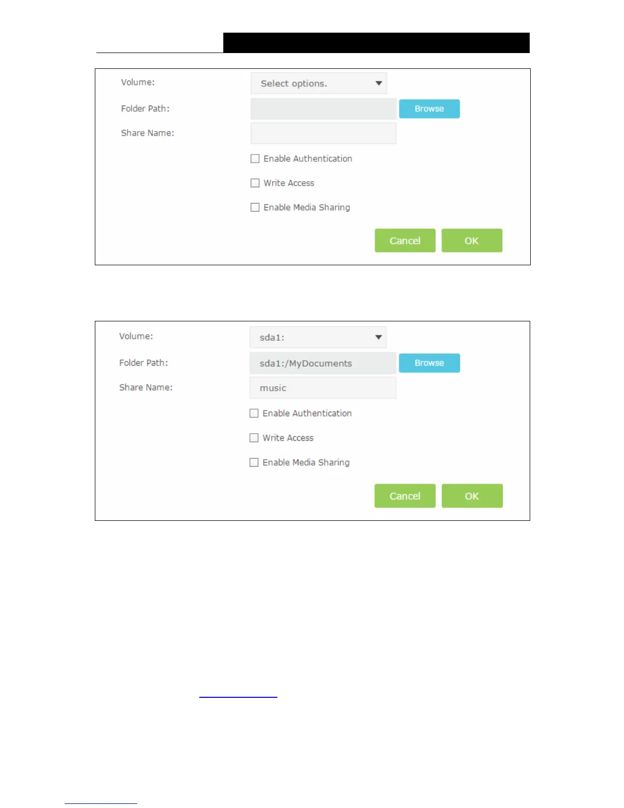 Enable Authentication - If this checkbox is selected, then the folder sharing needs