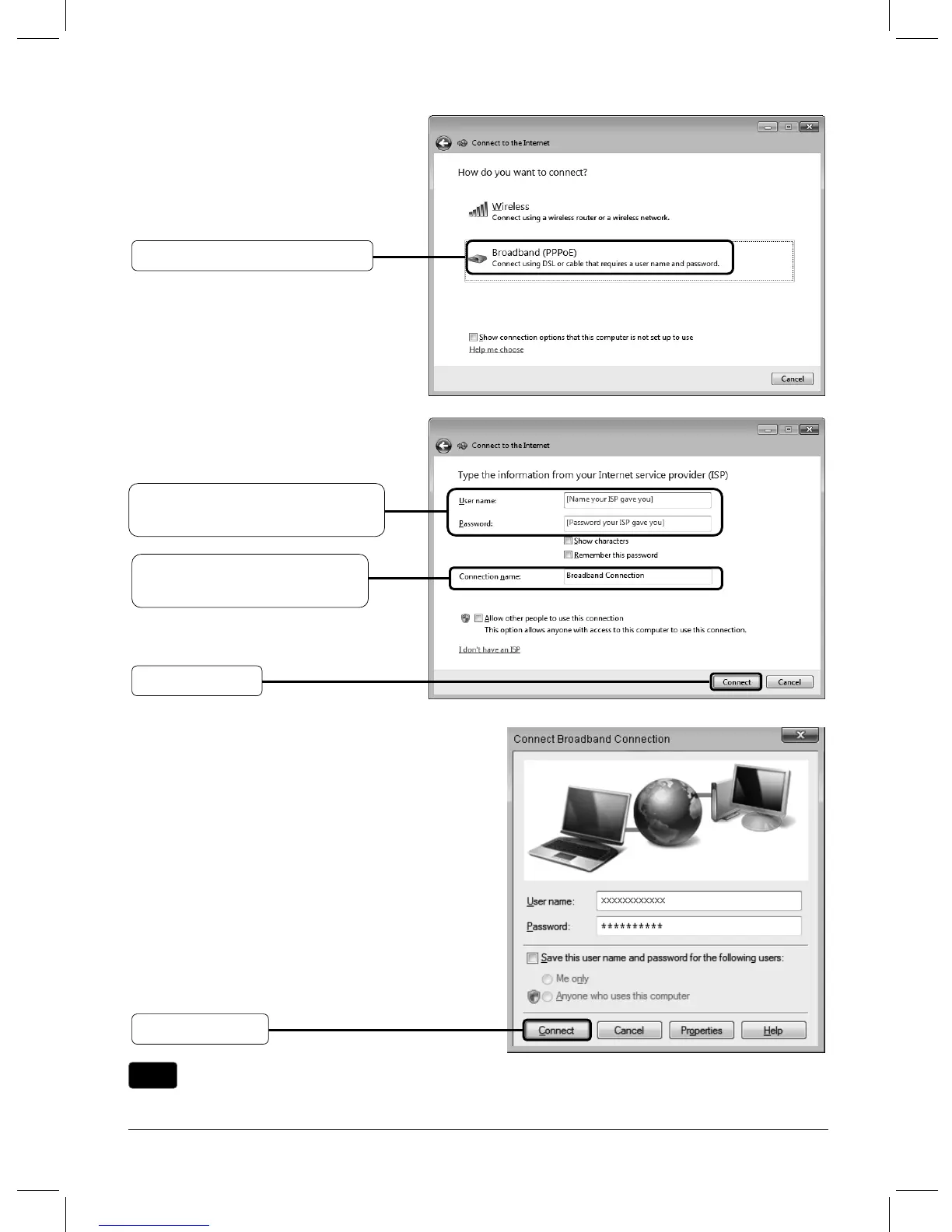 The User name and Password displayed here are given by your ISP,
