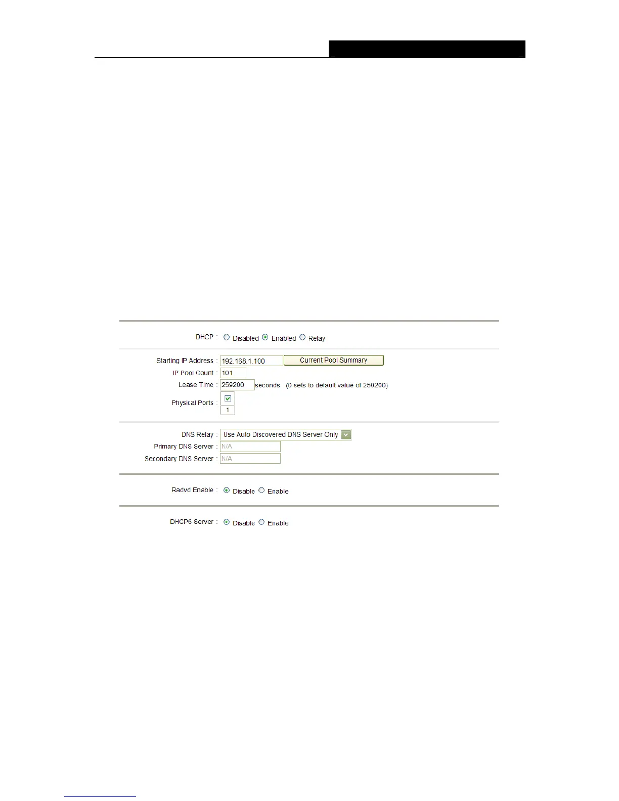 Current Pool Summary: Click the button, you can view the IP addresses that the DHCP