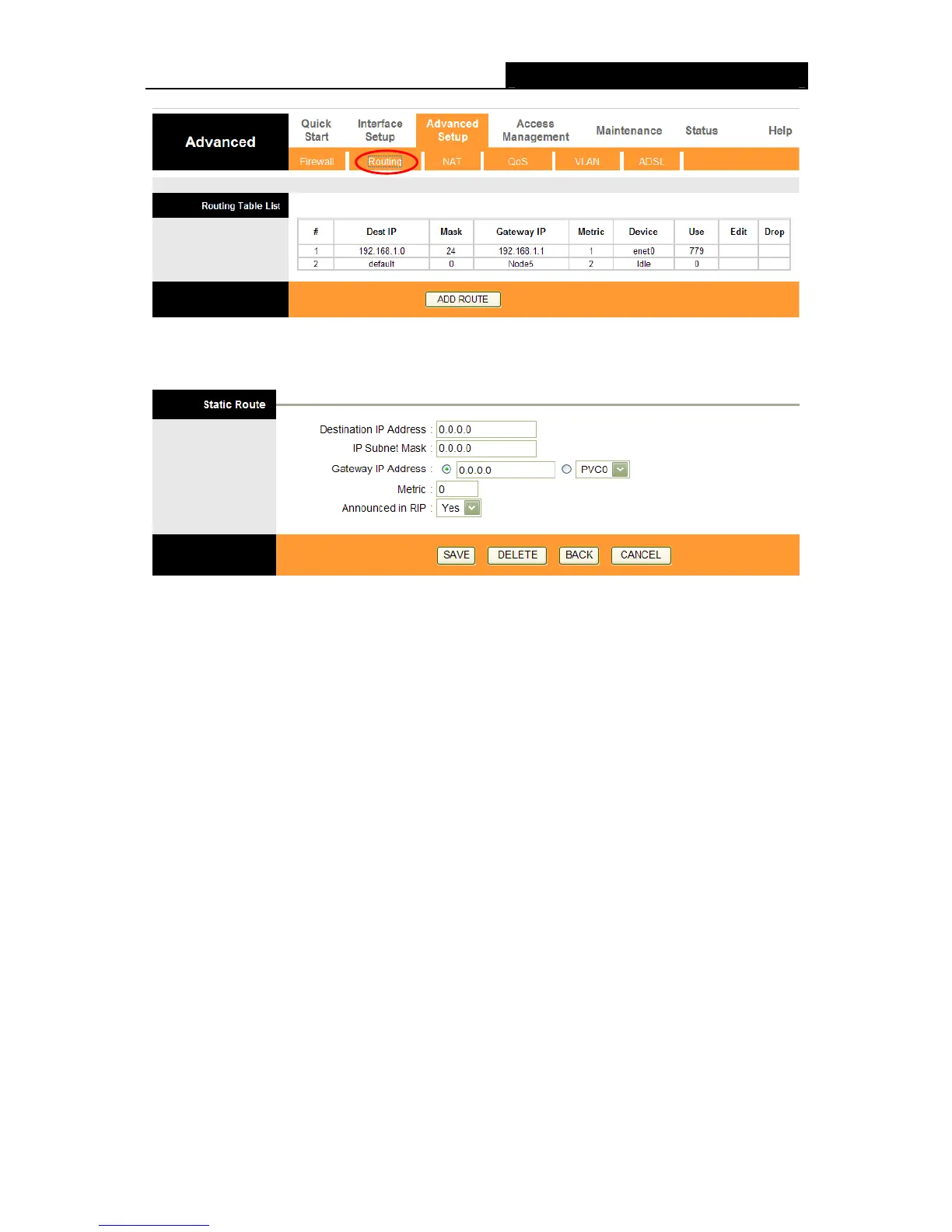 Click ADD ROUTE button to add a new route in the next screen (shown in Figure 4-21).