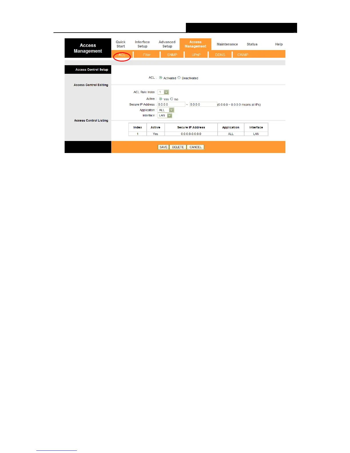 access to the modem router. If Deactivated, all IP addresses can access to the modem
