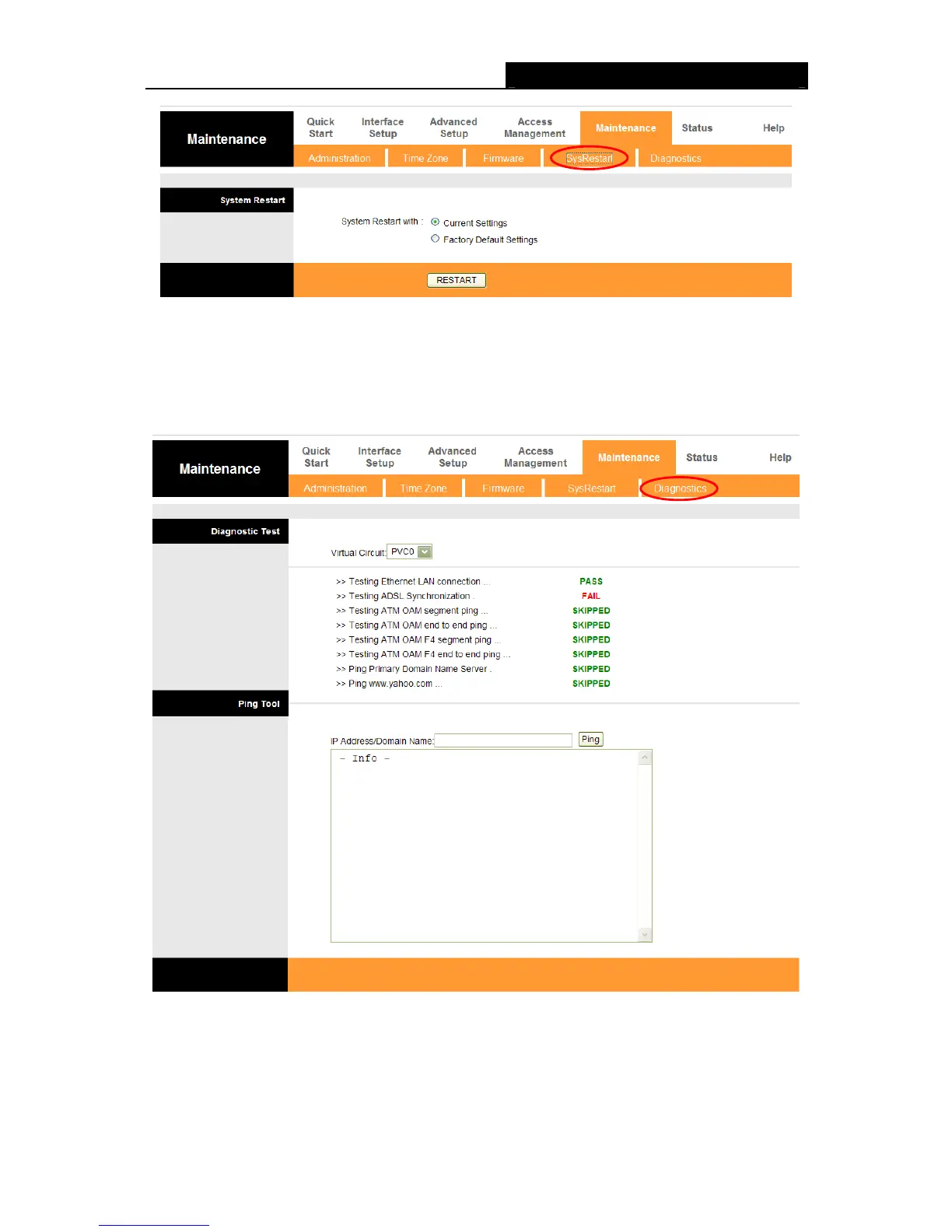 Choose “MaintenanceDiagnostics”, you can view the test results for the connectivity of the