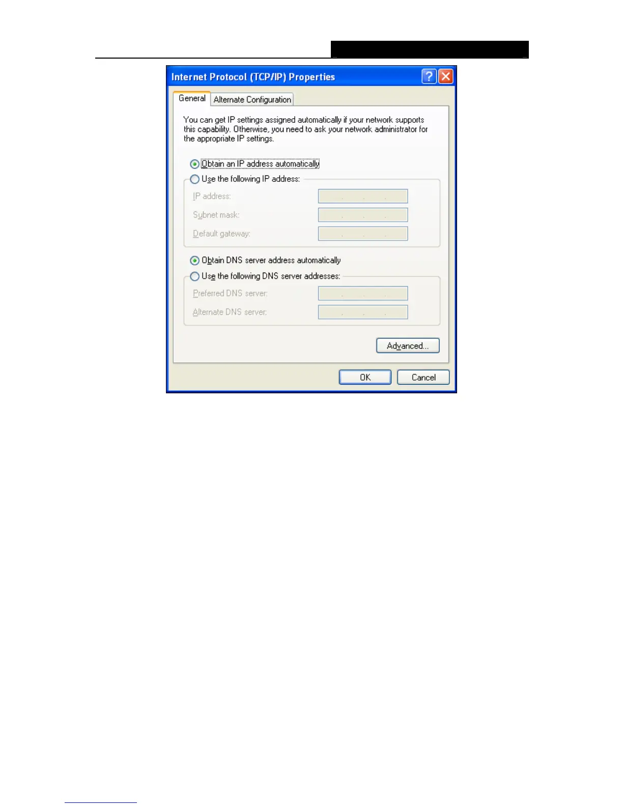 (x is from 2 to 254), and the Subnet mask as 255.255.255.0.