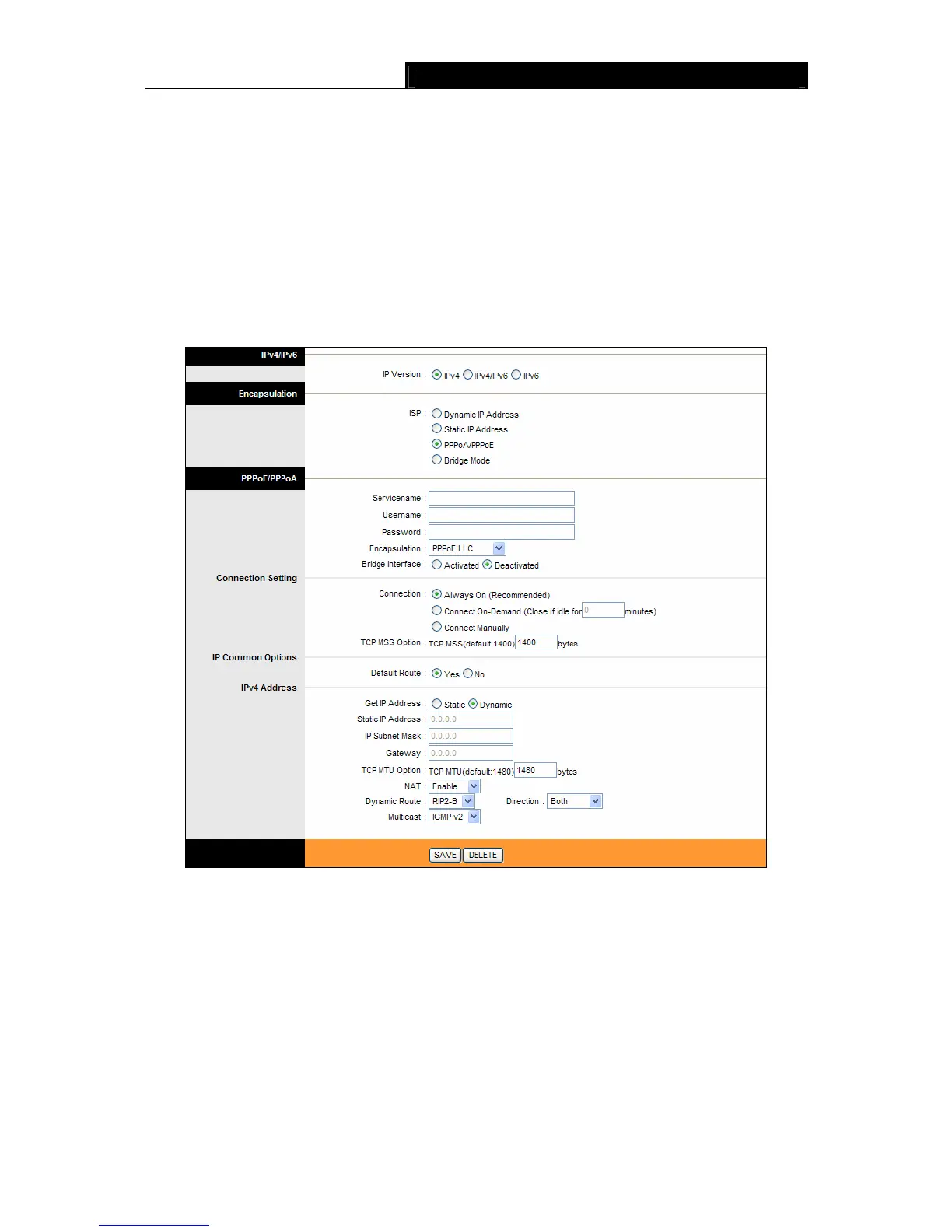 Encapsulation: For both PPPoA/PPPoE connection, you need to specify the type of