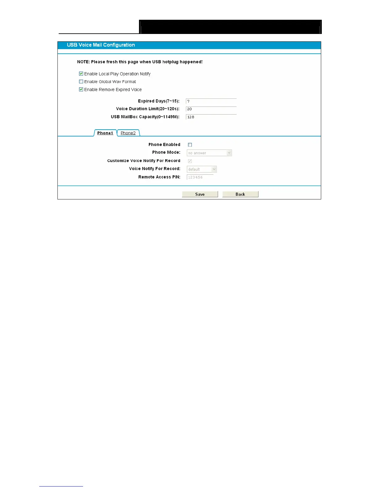 ¾ Enable Remove Expired Voice: Check this box and then the expired voice messages will be