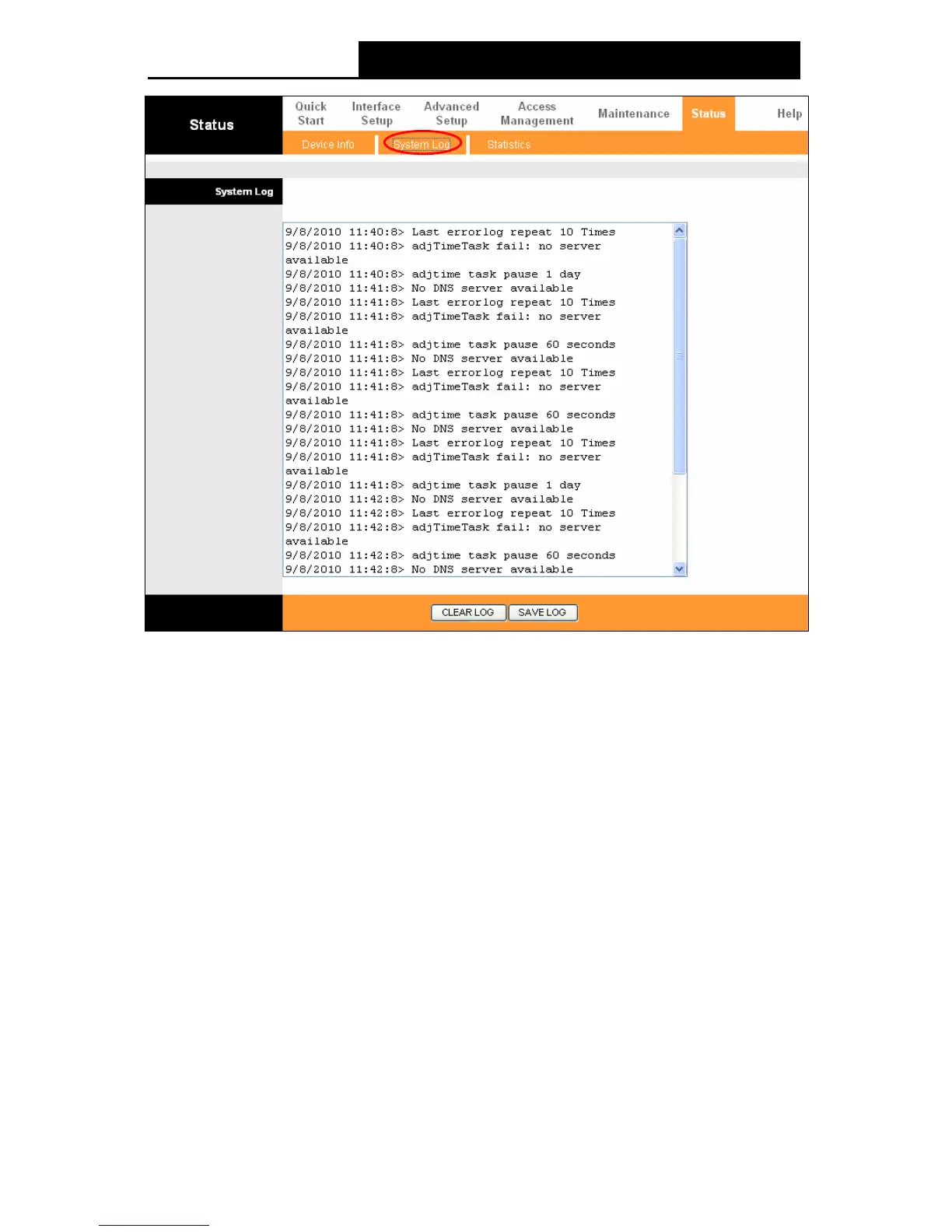 Click the CLEAR LOG button to clear the logs.