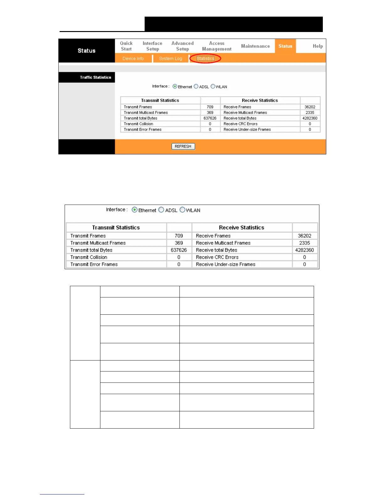 Select Ethernet, and you will see the statistics table as below.