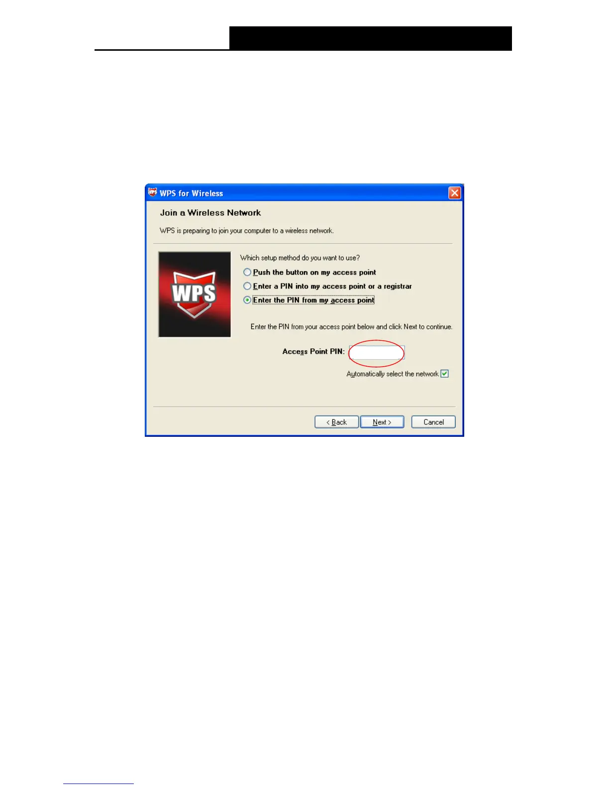 access point” in the configuration utility of the WPS as below, and enter the PIN