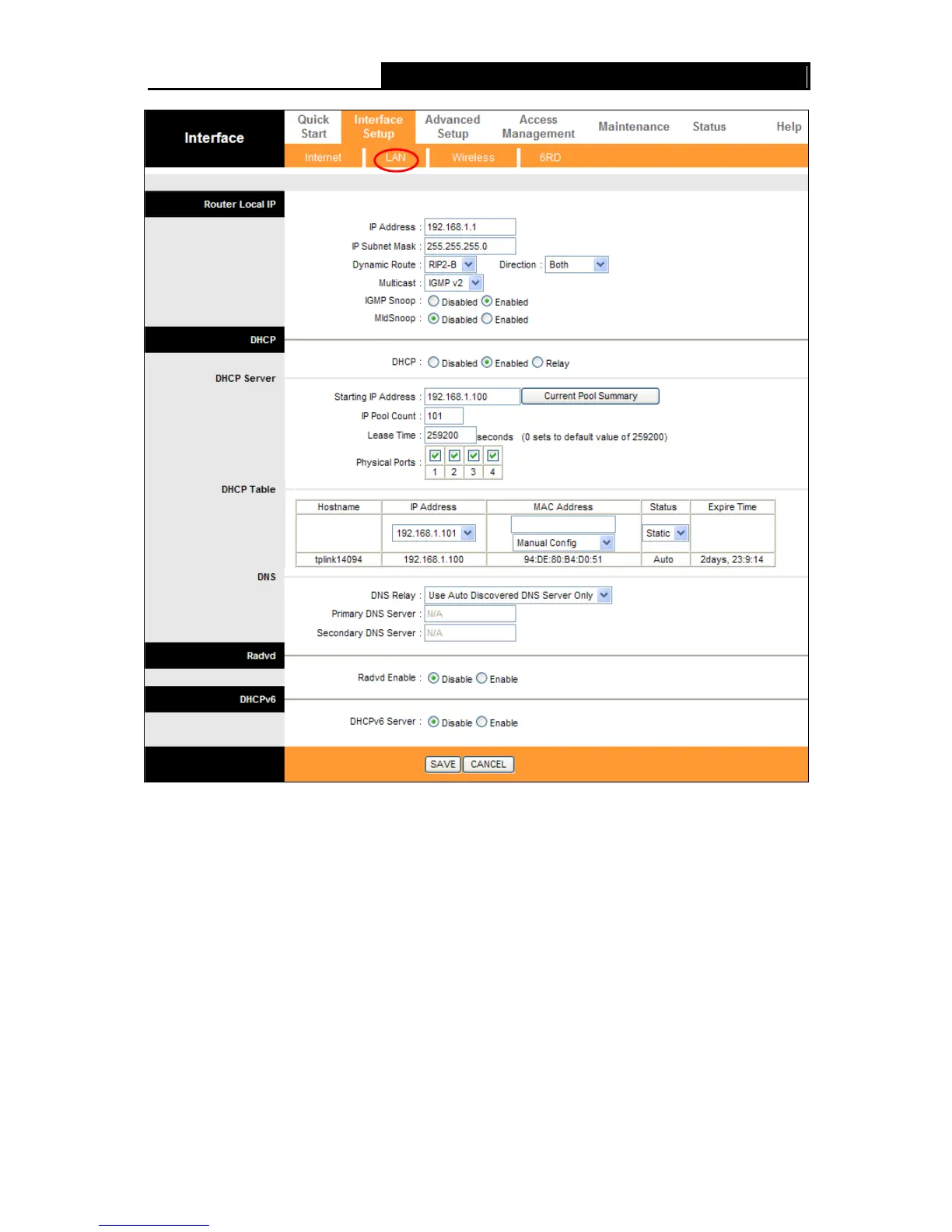 may be referred to as Private settings. You may change the LAN IP address if needed. The