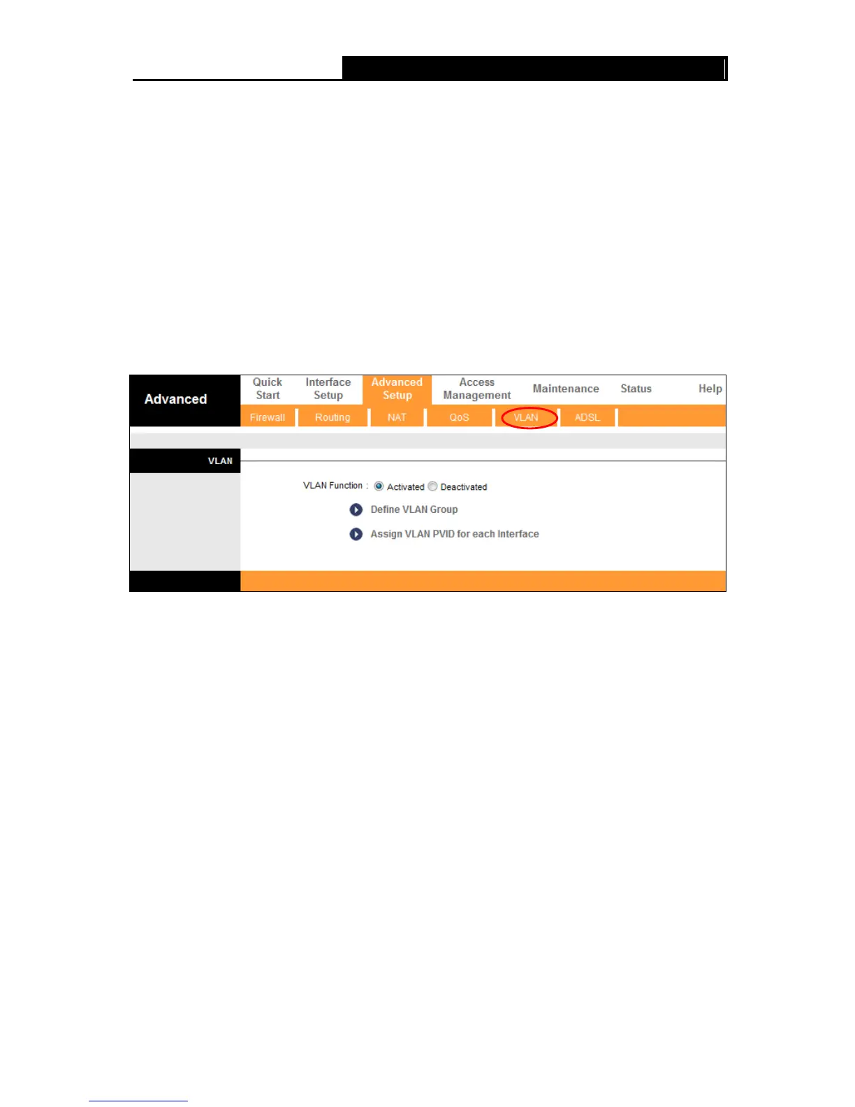 Choose “Advanced Setup→VLAN”, you can activate the VLAN function in the next screen.