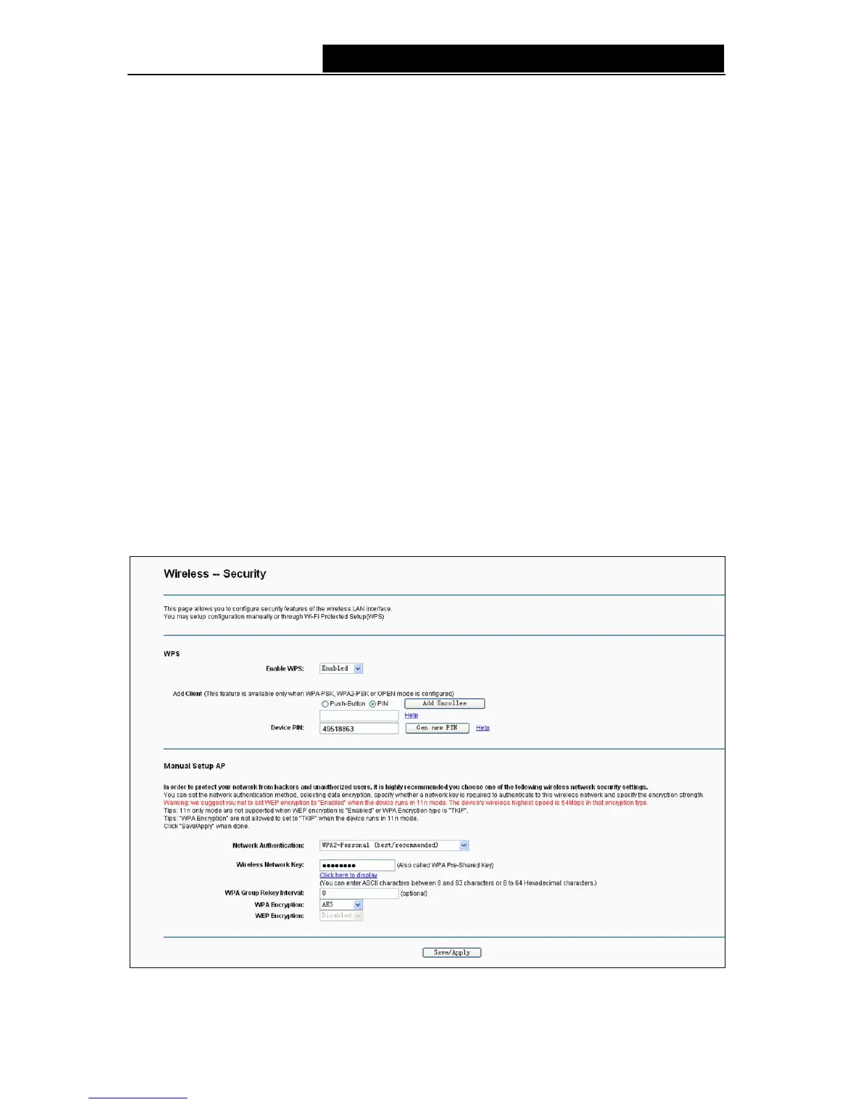 Choose “Wireless””Security”, you will see the screen of Wireless--Security settings shown as