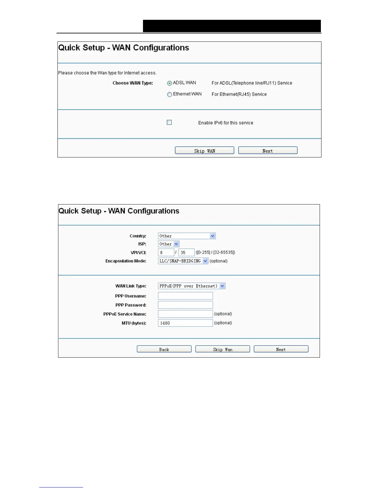 Choose the WAN Link Type given by your ISP. Here we use PPPoE as an example. Enter