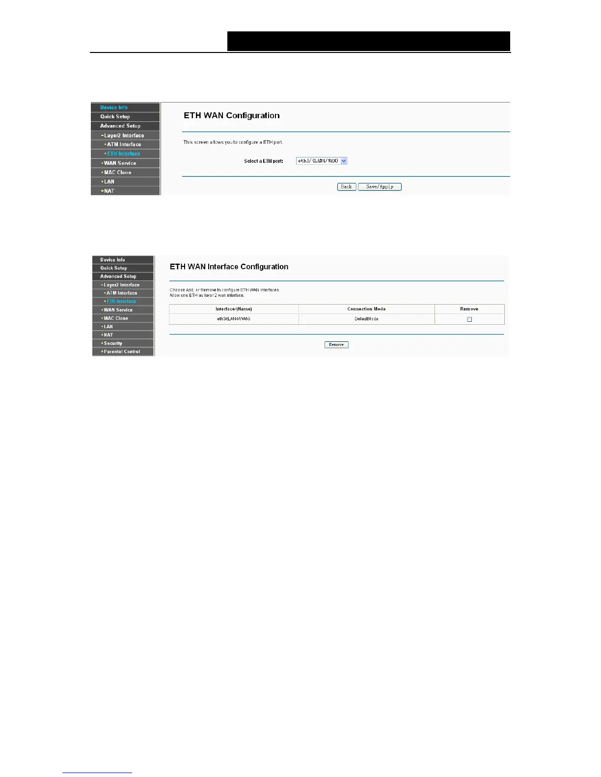 One ETH is allowed to configure as the layer 2 WAN Interface.