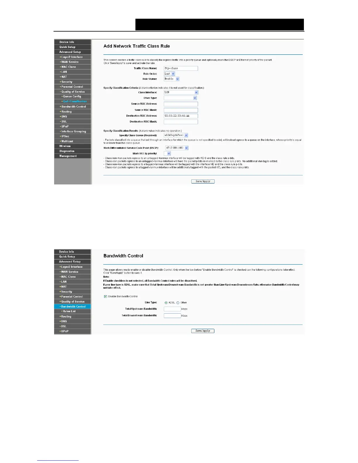 Choose “Advanced Setup”Æ“Bandwidth Control” and then you will see the screen as shown in