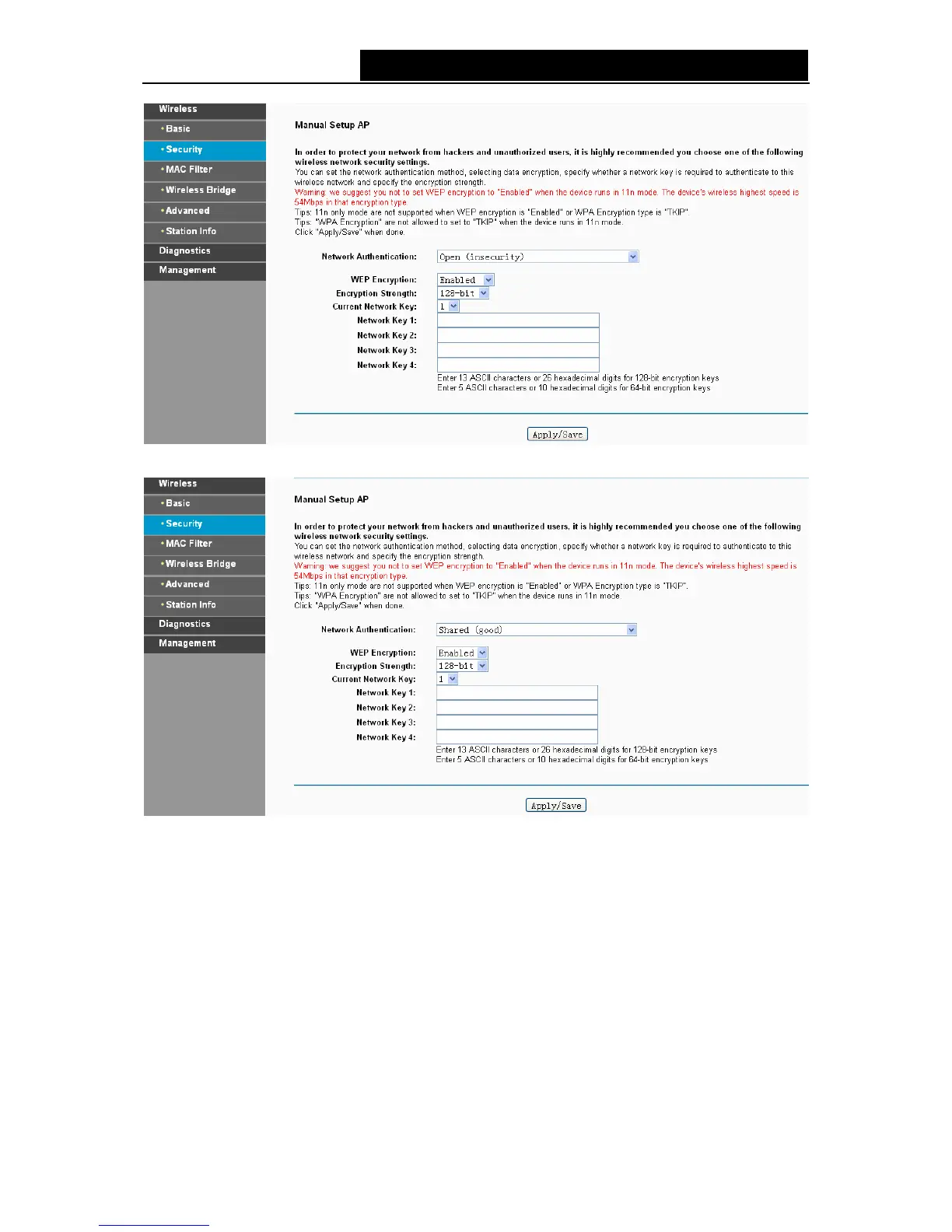 ¾ Network Key 1-4: If you want to manually enter the WEP keys, then enter them in the network