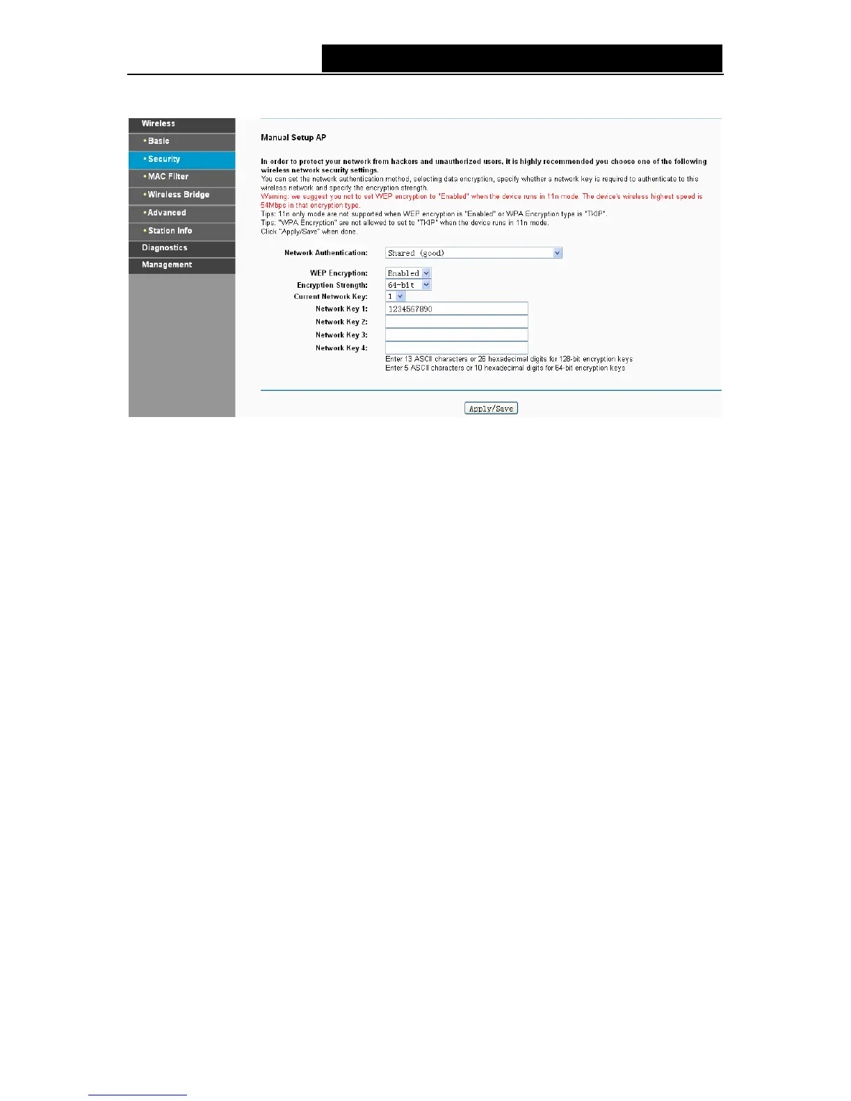 We use Network Authentication Shared (good), Encryption Strength 64-bit, Current Network