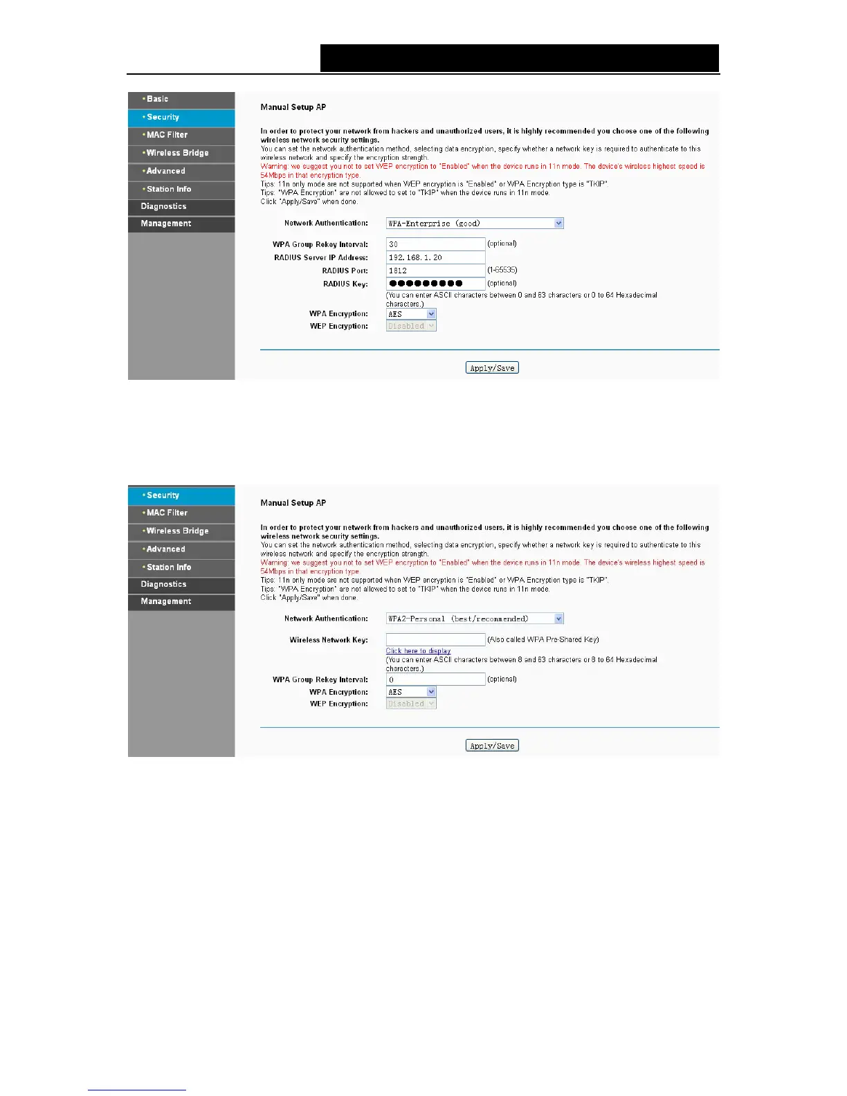 1. Select WPA-Personal. The menu will change to offer the appropriate settings as the picture