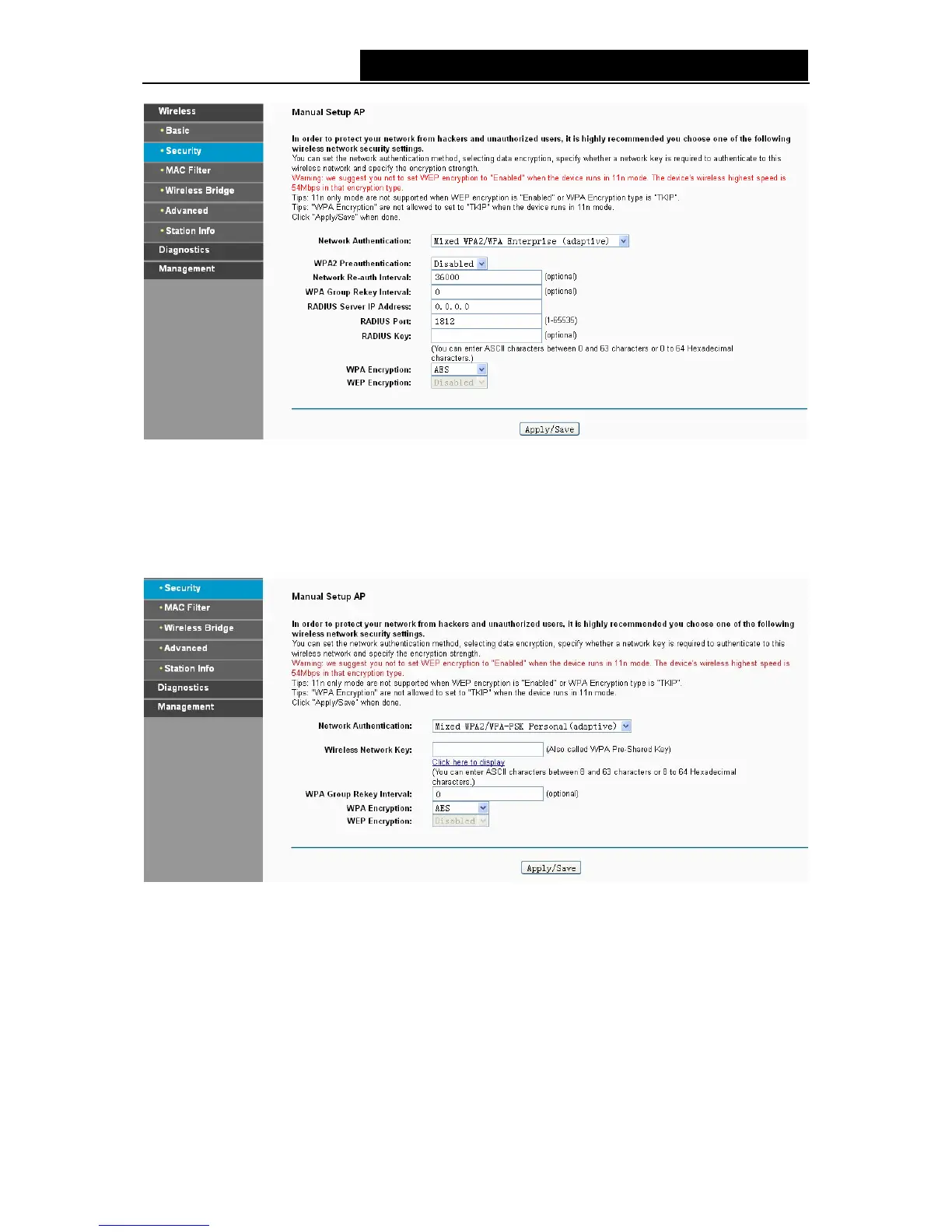 To configure Mixed WPA2/WPA-Personal settings, select the Mixed WPA2/WPA-Personal option