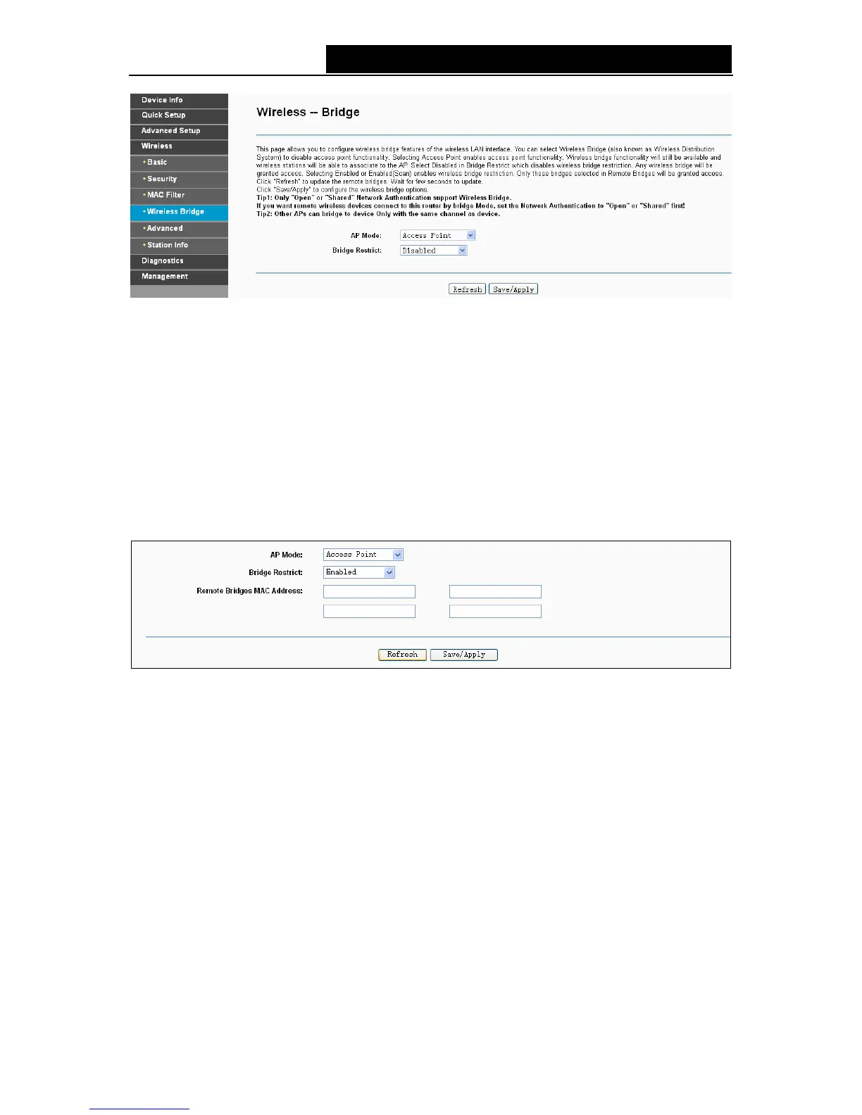• Enabled: Select this option (as shown below) to enables wireless bridge restriction, please