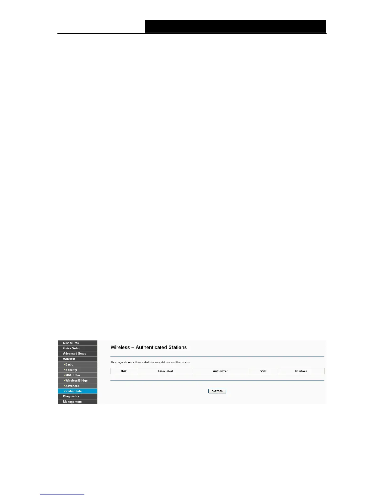 Choose “Wireless”Æ” Station Info”, you will see the screen of Wireless--Authenticated