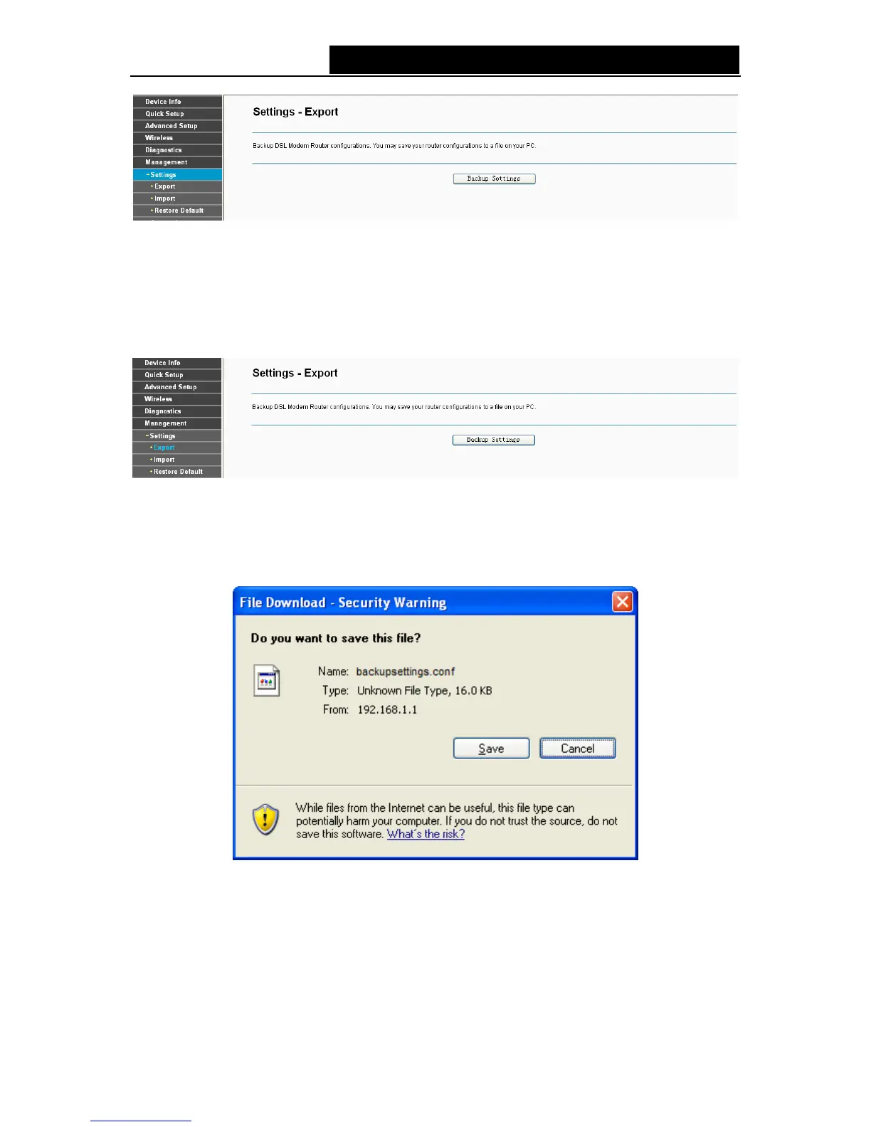 (shown in Figure 4-97) allows you to save the current configuration of the modem router as a