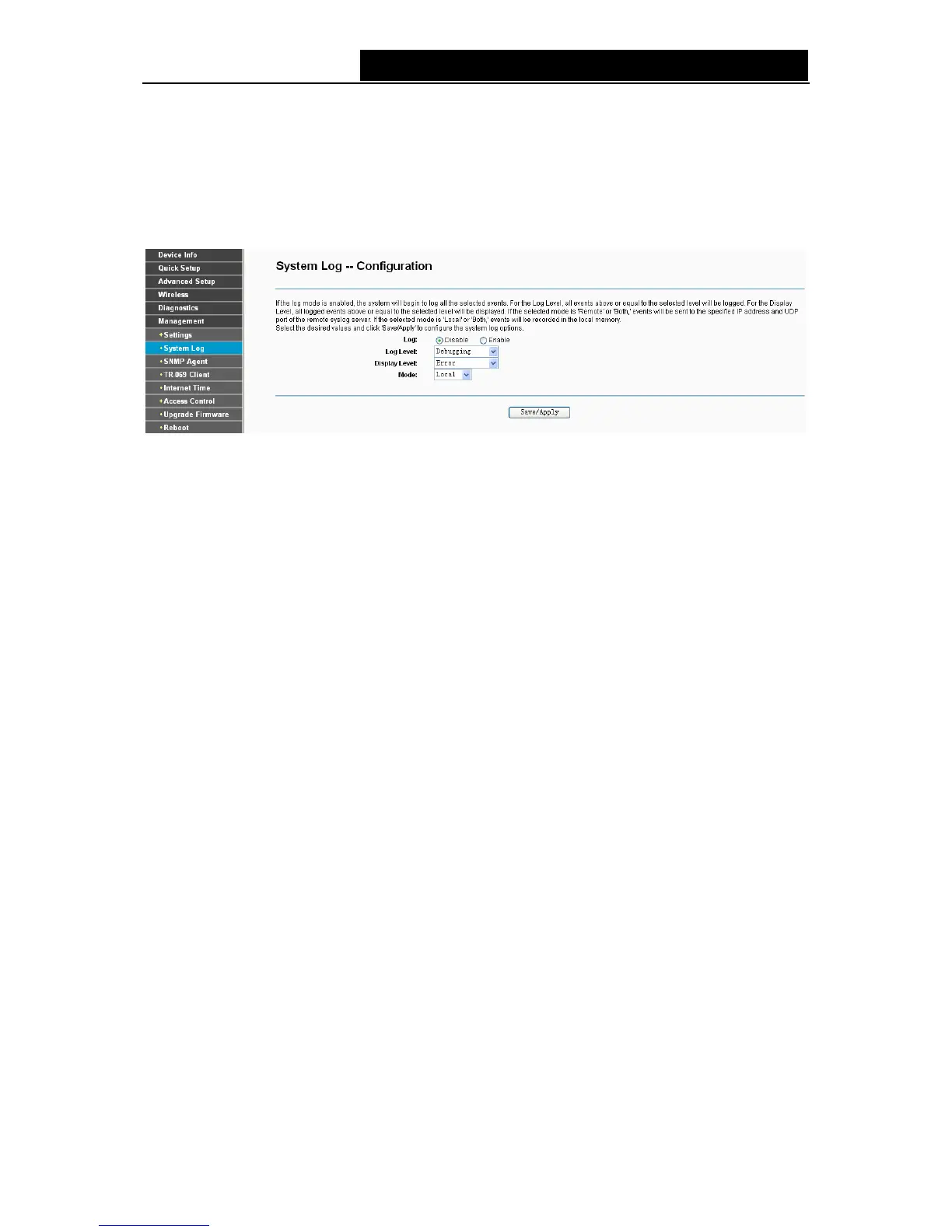 Click the Configure System Log button (shown in Figure 4-102), you will see the screen below