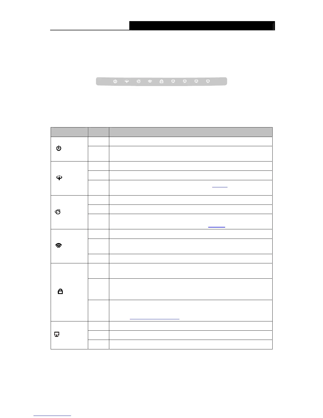 The LEDs locate on the front panel. They indicate the device’s working status. For details, please