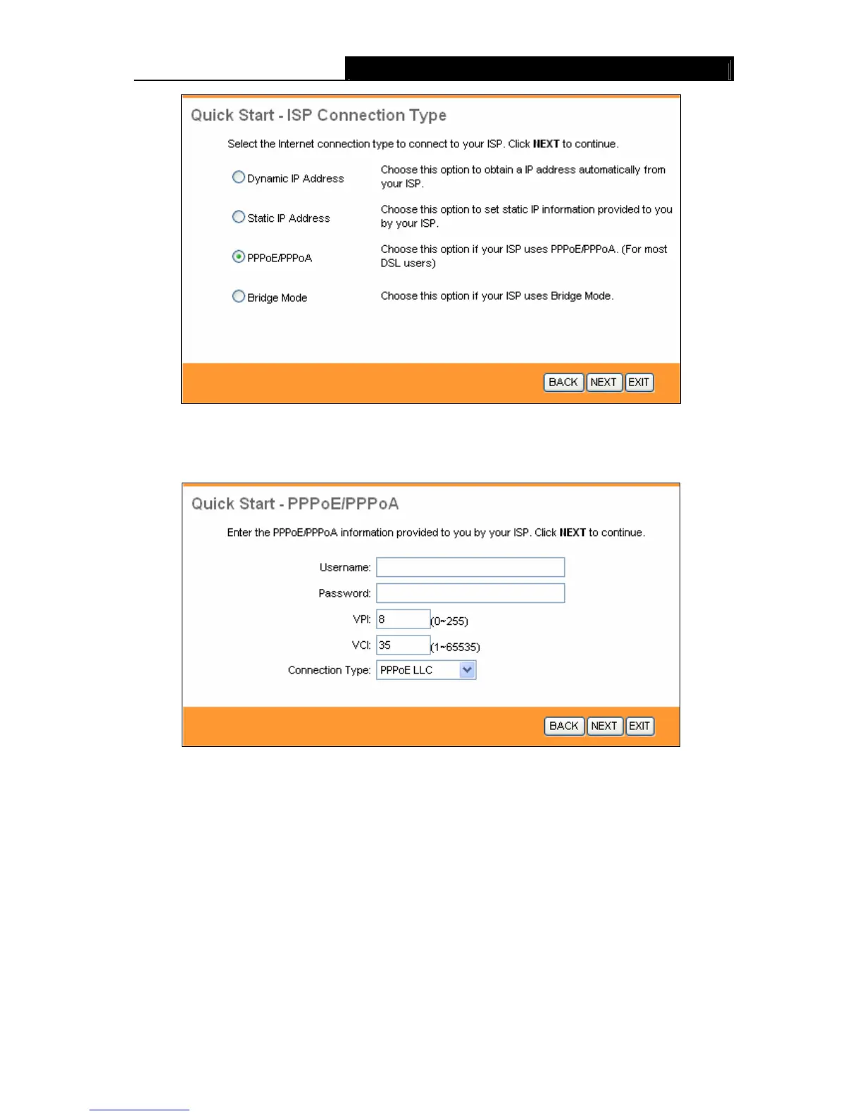 Step 4: Configure the following options provided by your ISP: Username, Password, VPI, VCI
