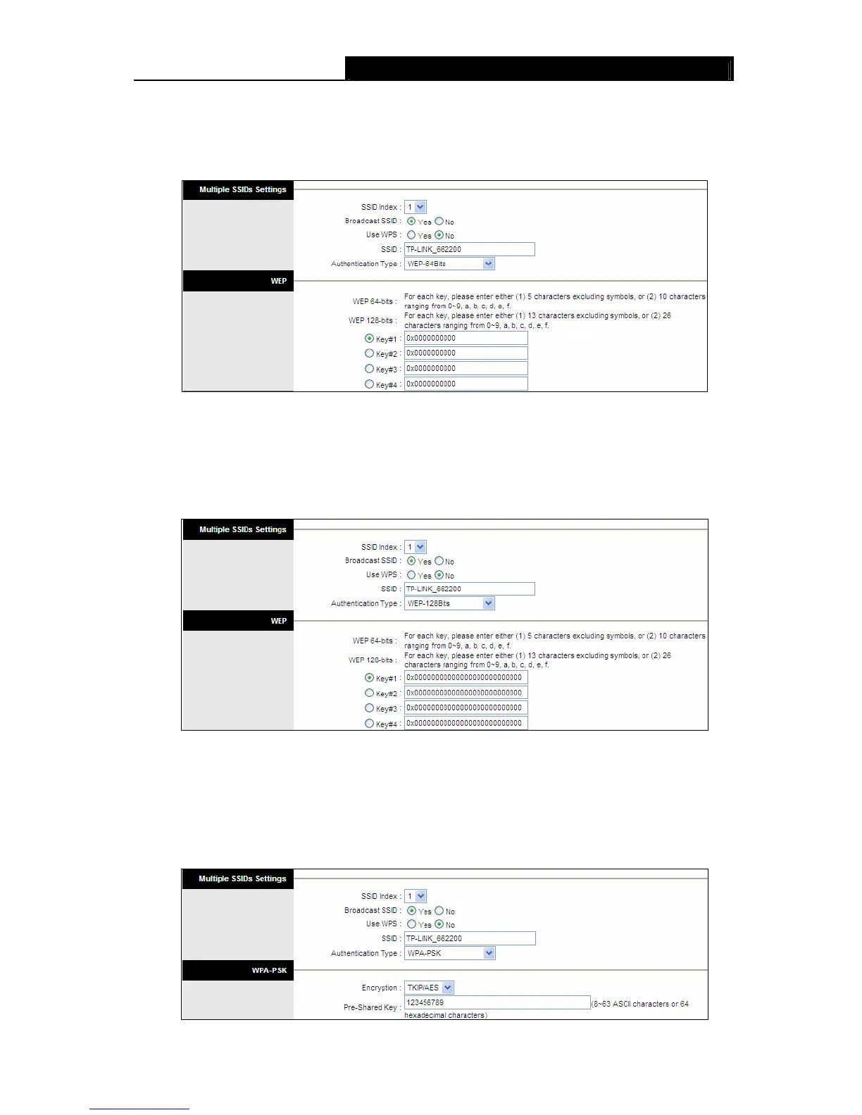 menu will change to offer the appropriate settings. WPA-PSK requires a shared key and does