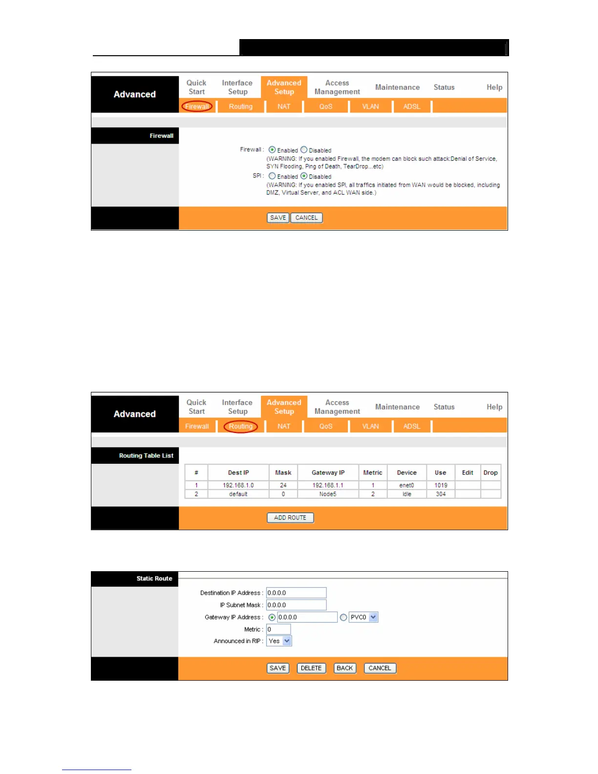 Choose “Advanced Setup→Routing” menu, and you will see the routing information in the next