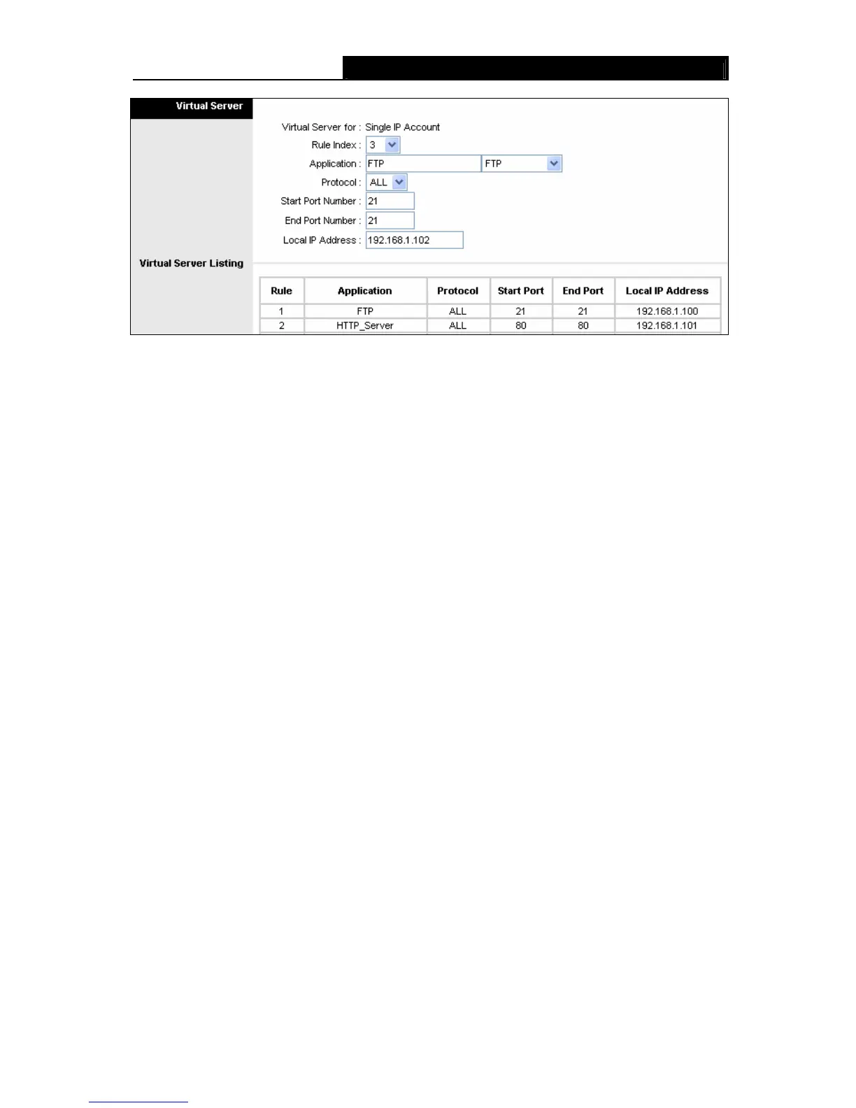 example, if you want to set the FTP Virtual server, you can set the start and end port number