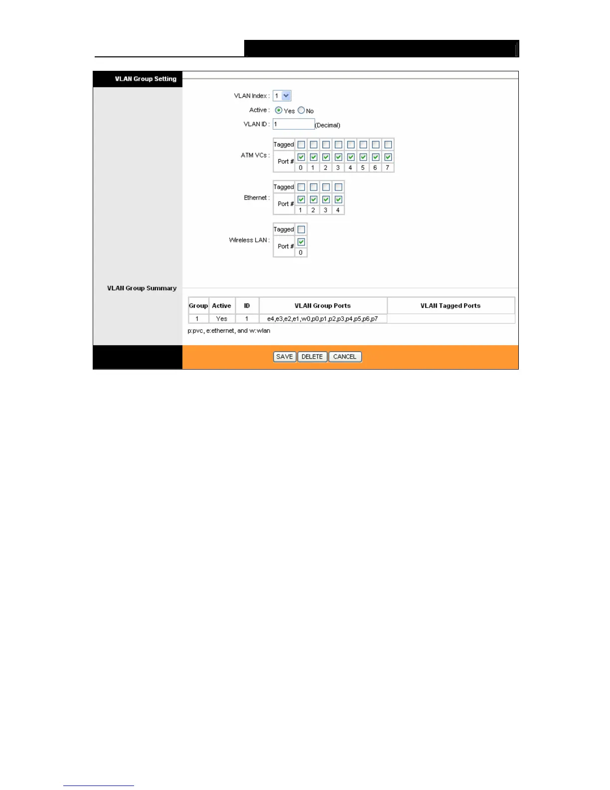 ¾ ATM VCs: Select the ATM VCs as members of VLAN, and if you leave the Tagged blank, the
