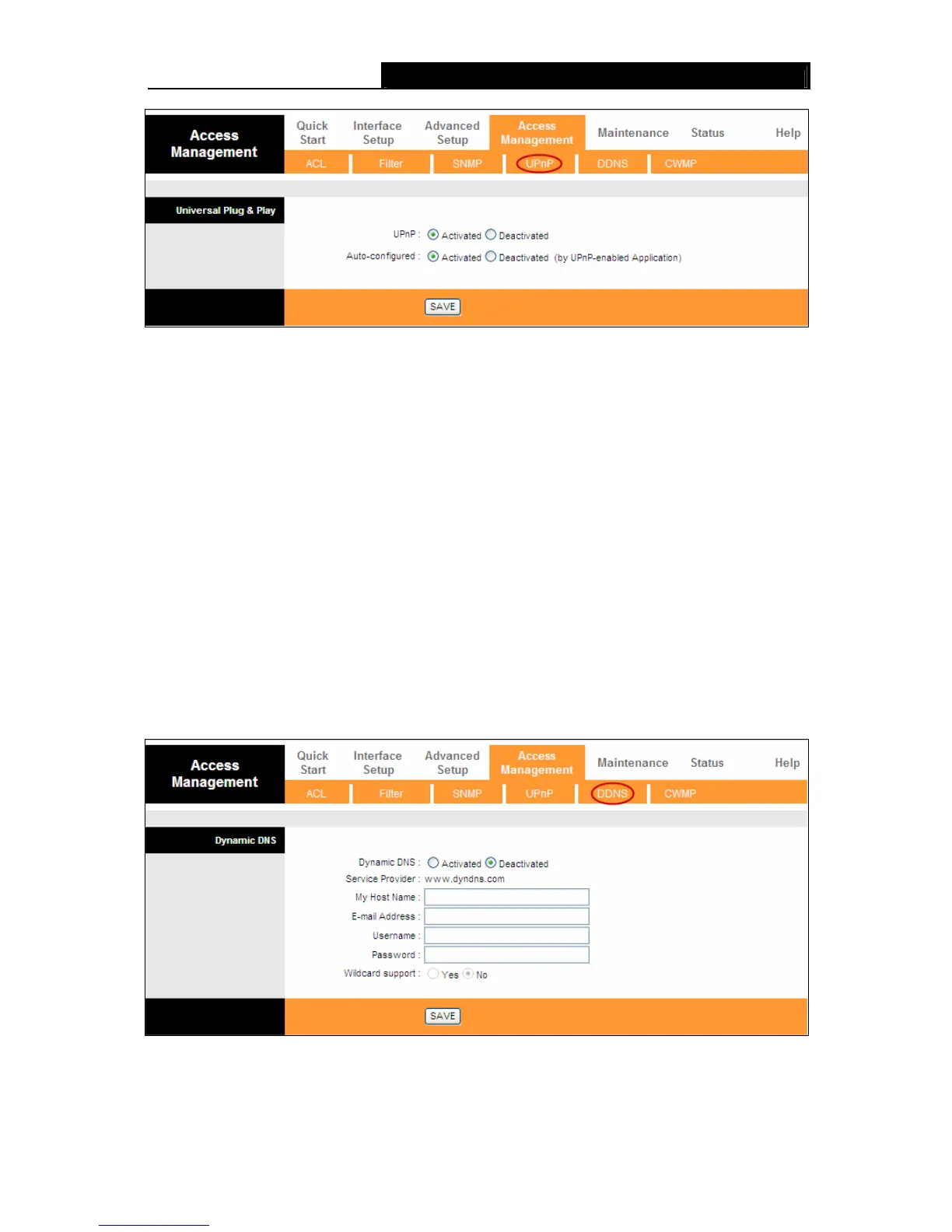 ¾ Dynamic DNS: Activate the DDNS function or not.
