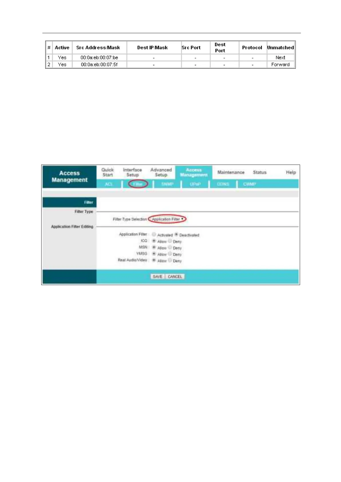 you select Allow, the modem router will accept the application; if you select Deny, the