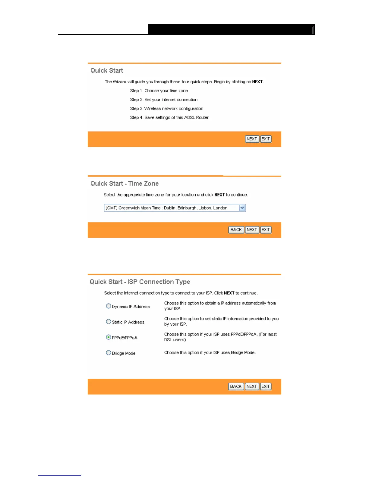 Step 3: Select the connection type to connect to the ISP (We select PPPoE/PPPoA mode for