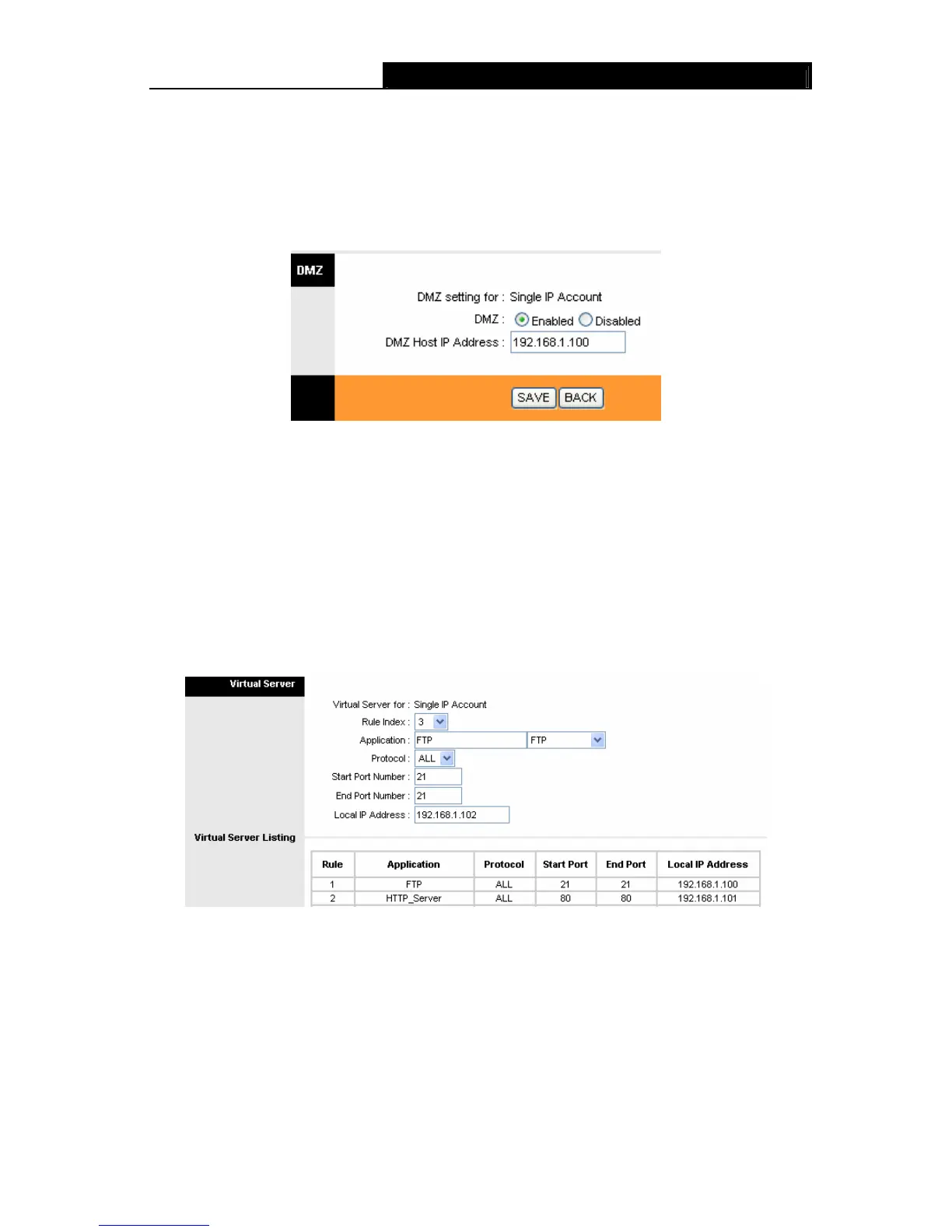 ¾ Application: The Virtual servers can be used for setting up public services on your LAN.