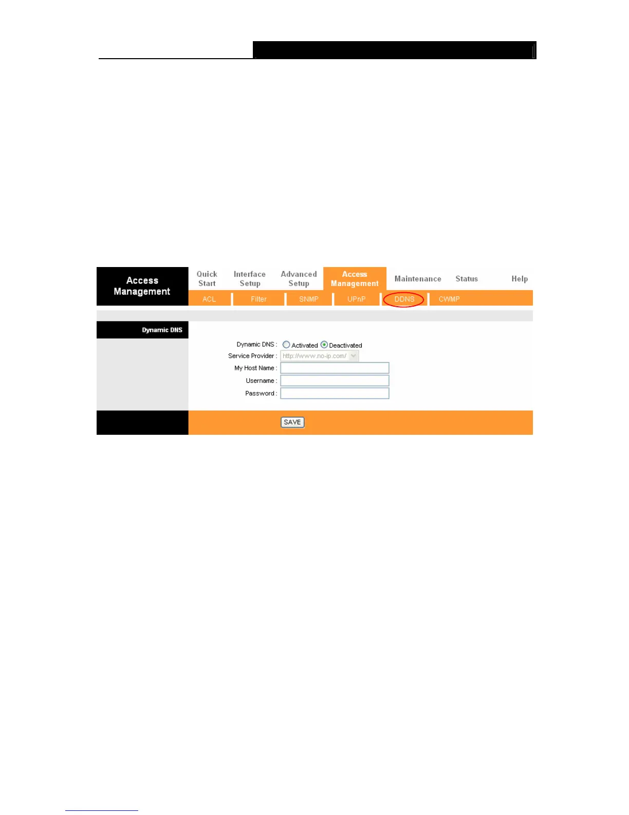 ¾ Dynamic DNS: Activate the DDNS function or not.
