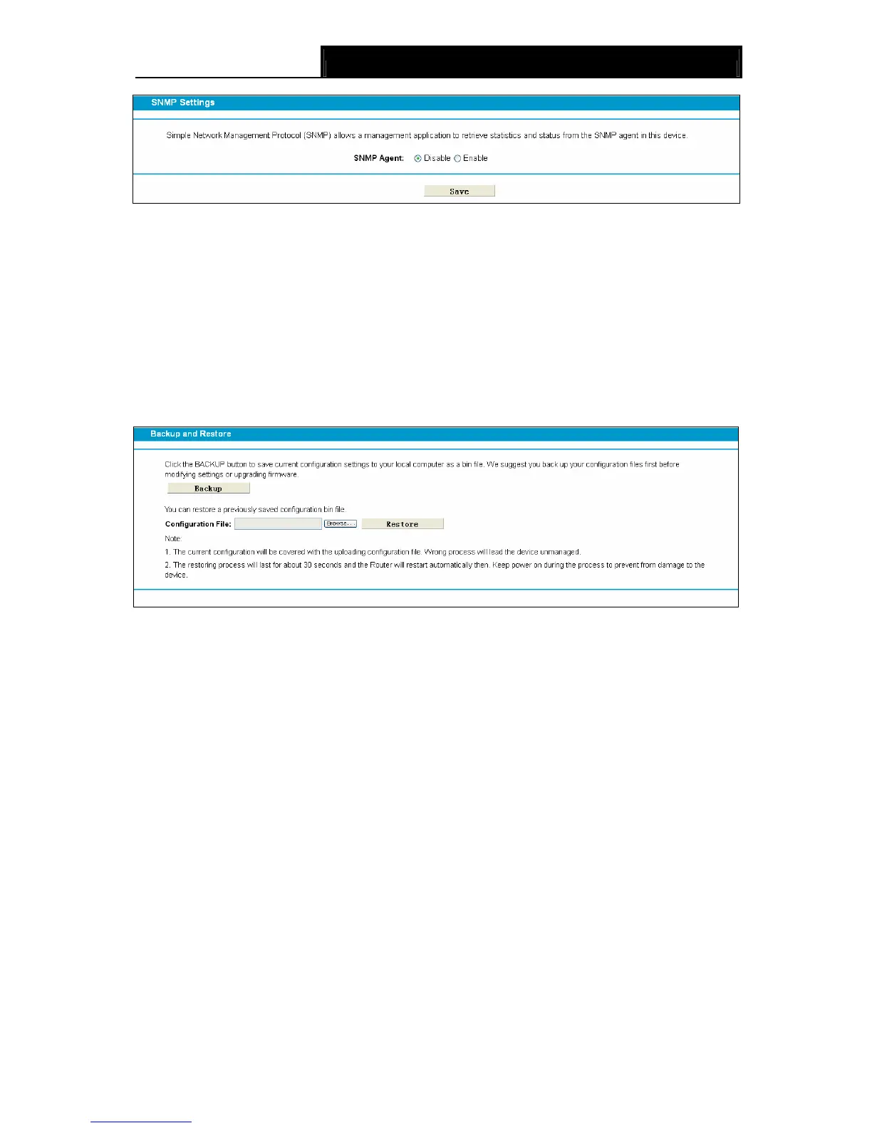 ¾ Click the Backup button to save all configuration settings as a backup file in your local
