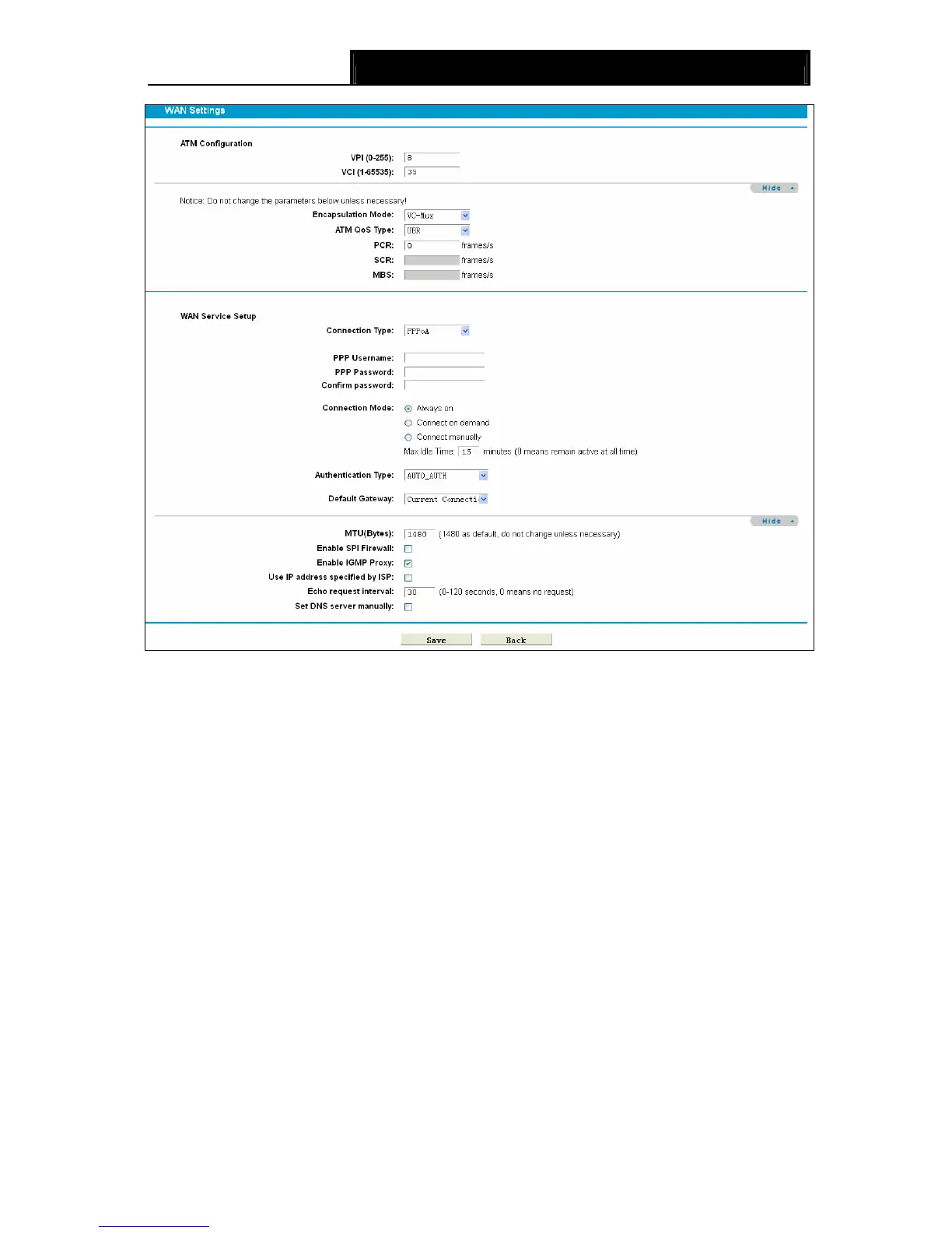 If your ISP provides an IPoA connection, select IPoA option for the WAN service type on the