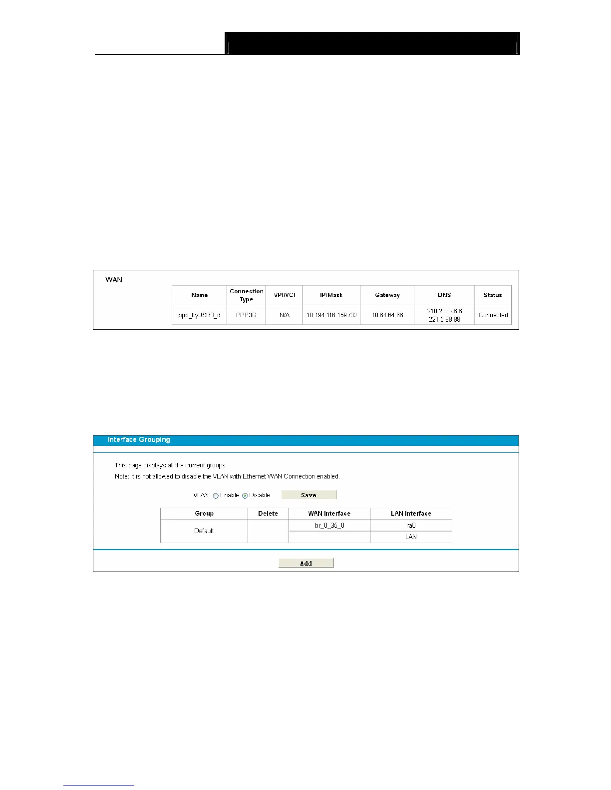 Choose “Network”Æ“Interface Grouping”, you can view all the current groups on this page