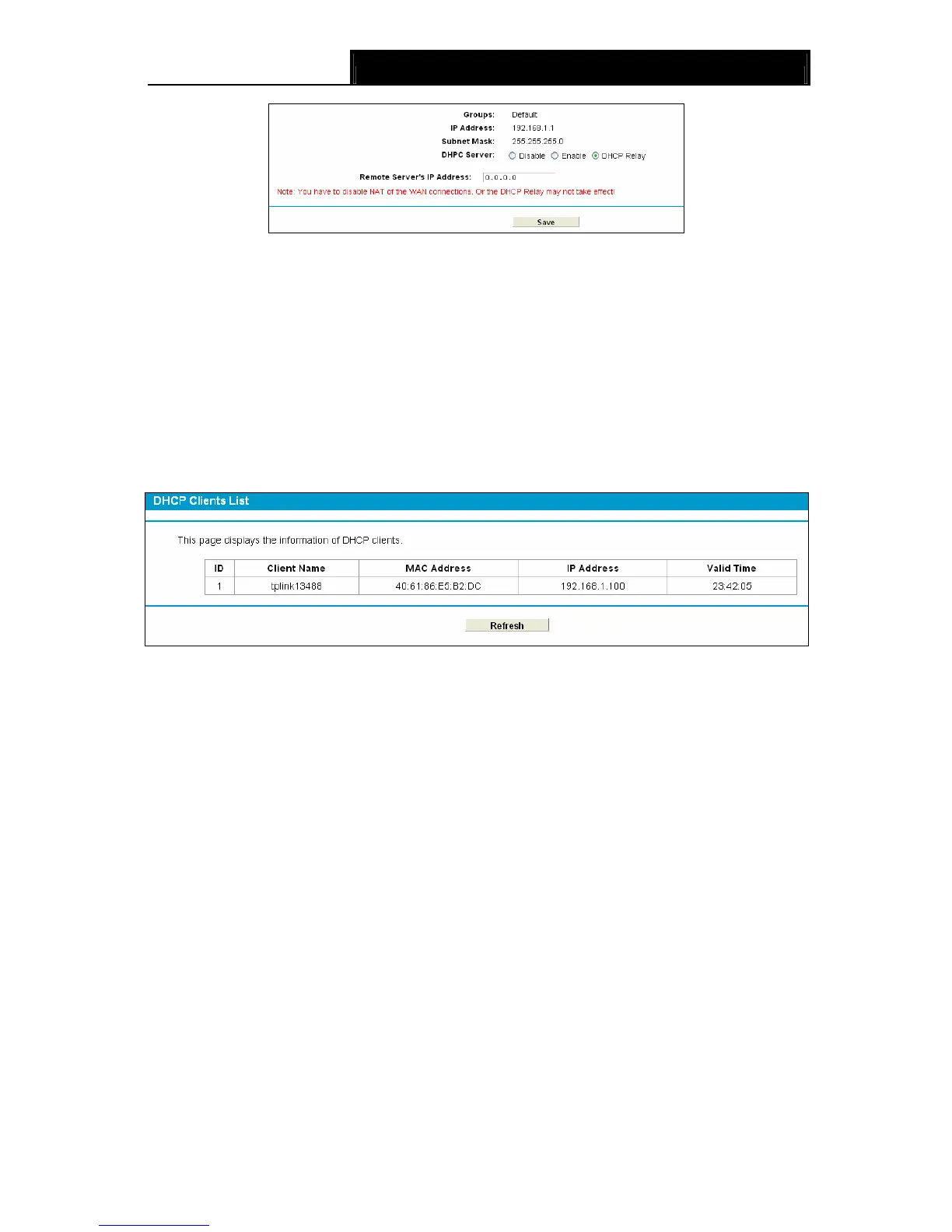 3) If you select Disabled, the DHCP function will not take effect.