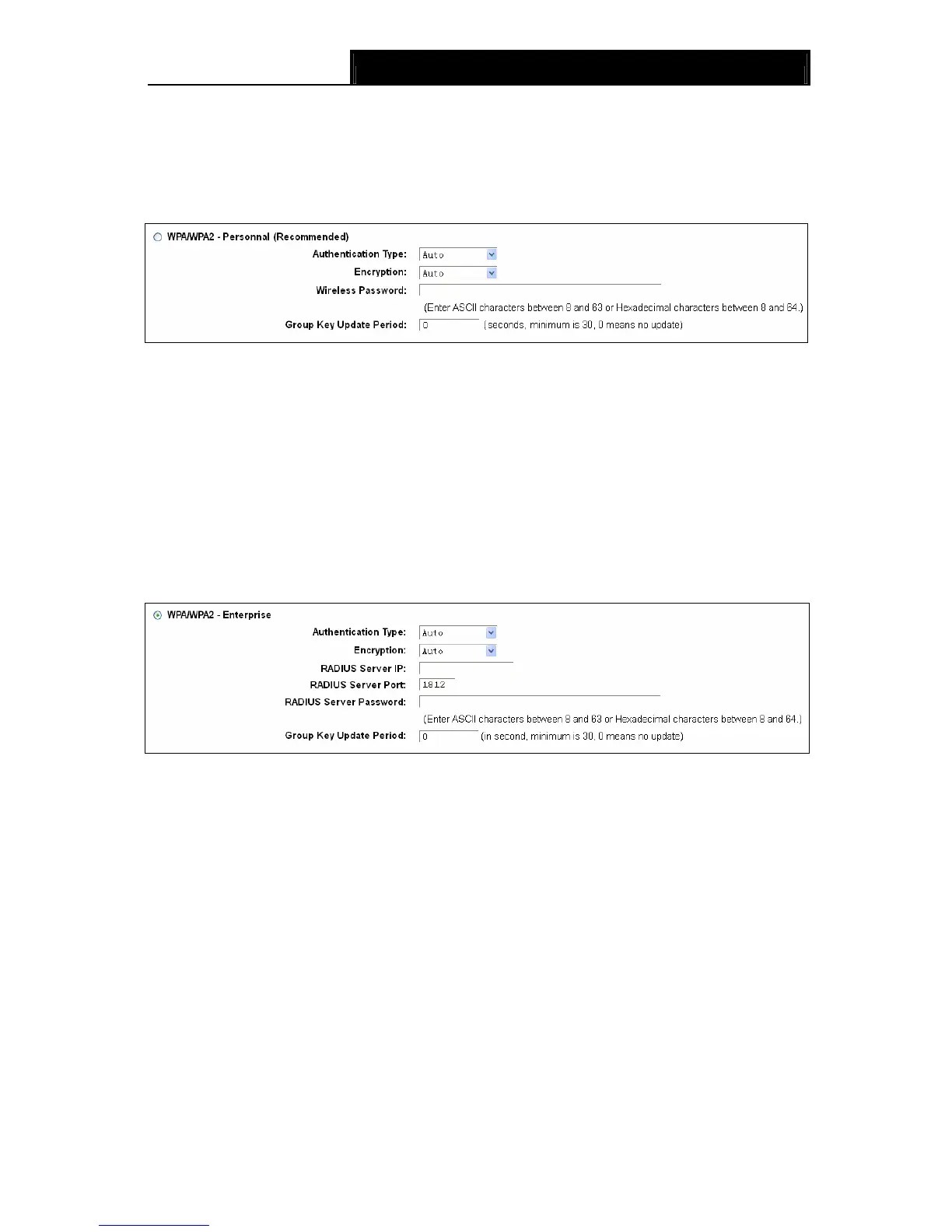 • Authentication Type: You can choose the version of the WPA security on the drop-down
