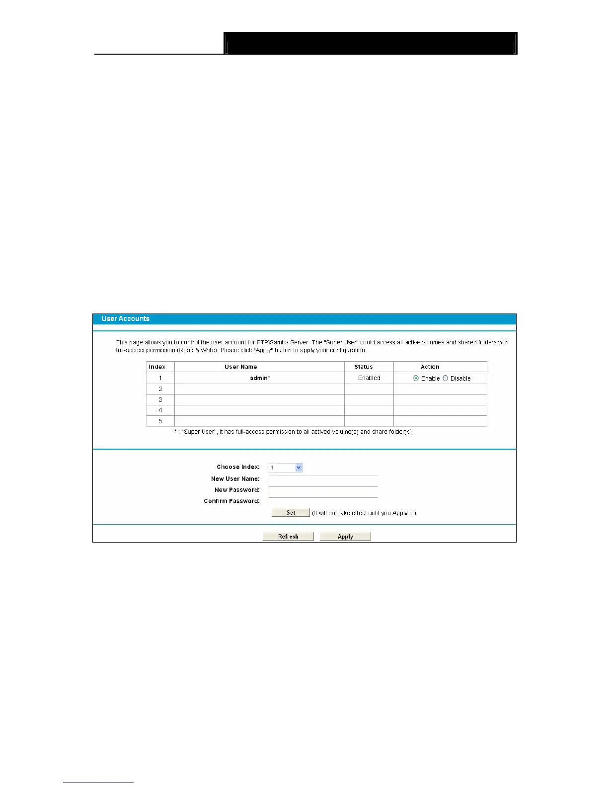 Storage Sharing or FTP. The Super User has the right to read and write to Storage Sharing and