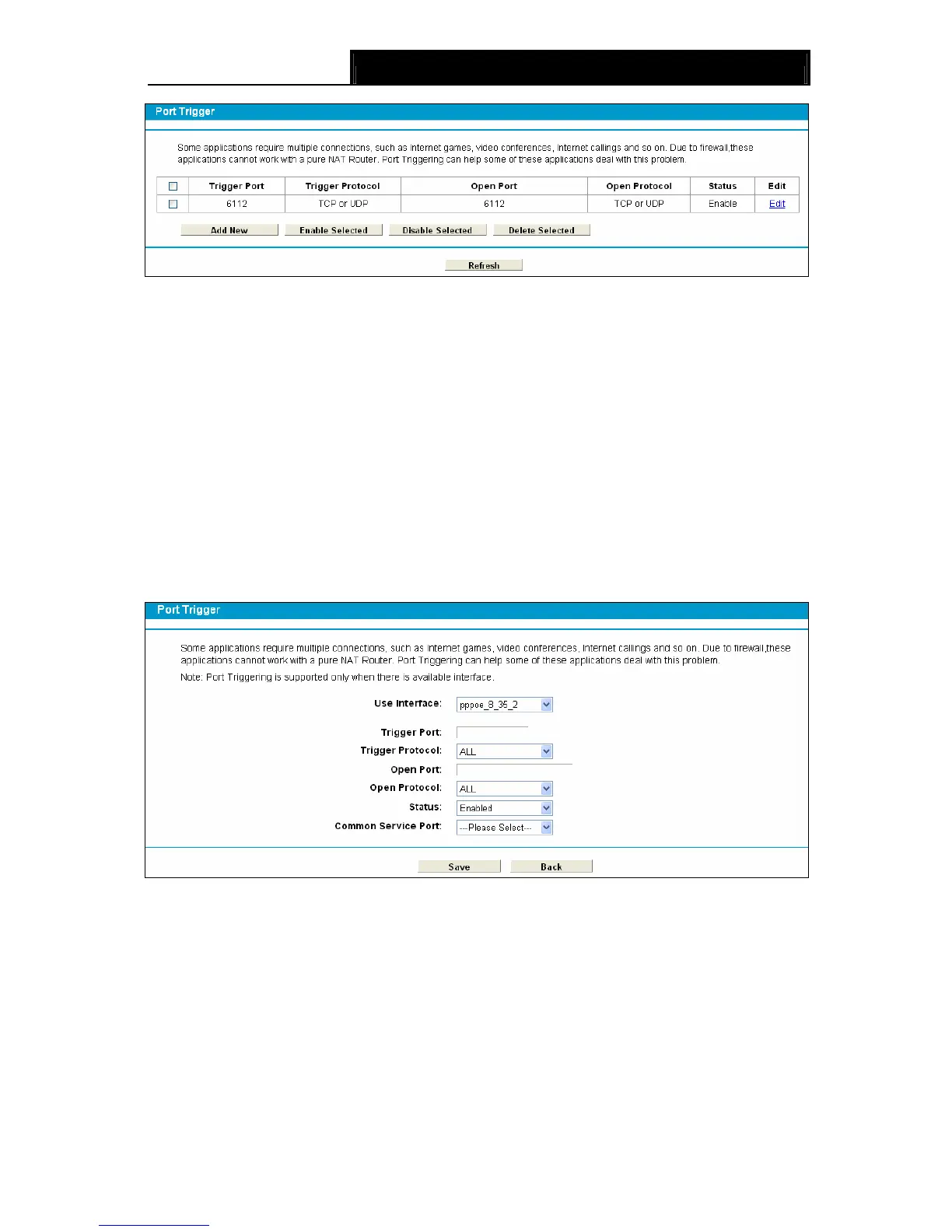 ¾ Trigger Port: The port for outgoing traffic. An outgoing connection using this port will trigger