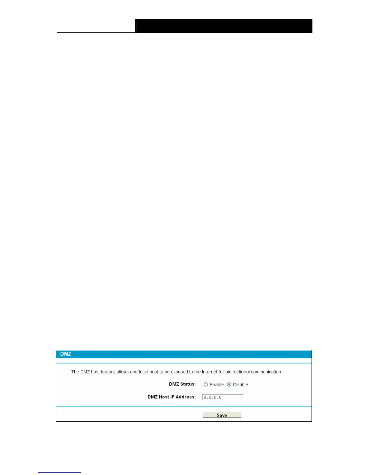 Choose menu “Forwarding→DMZ”, and then you can view and configure DMZ host in the screen
