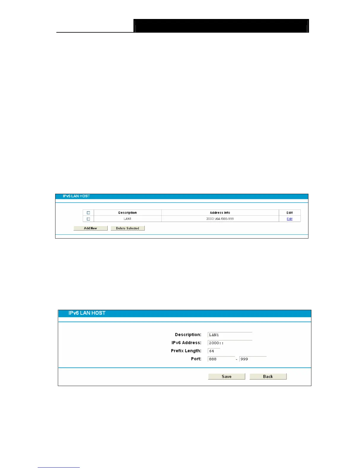 Choose menu “IPv6 Firewall” → “IPv6 LAN Host”, and then you can view and set a Host list in