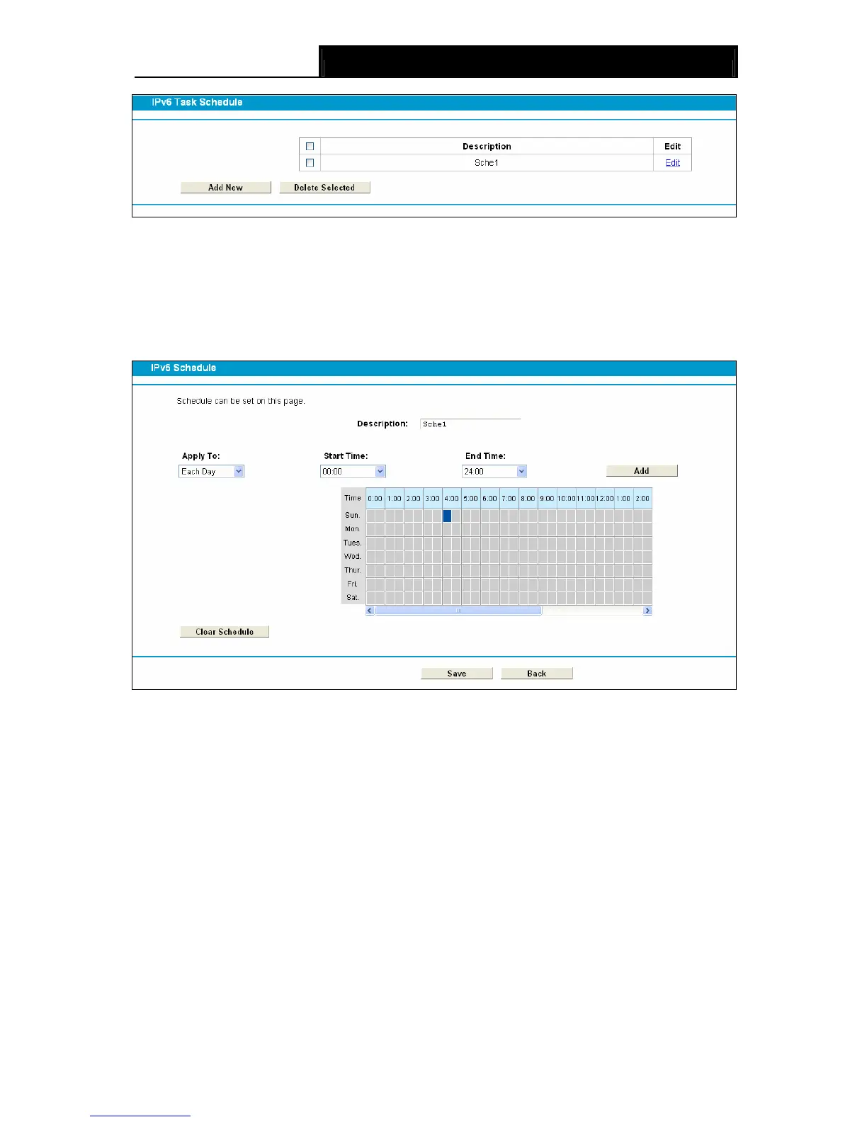 Click the Clear Schedule button to clear your settings in the table.